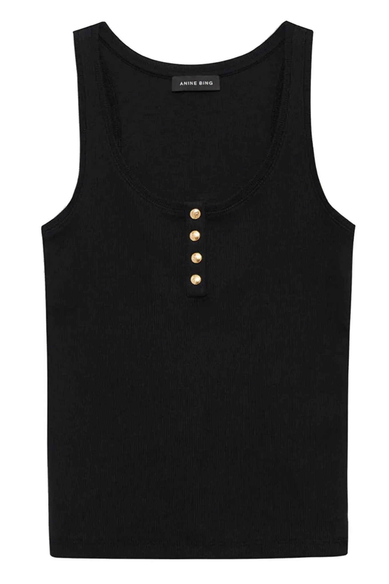 - Moderne Henley-inspireret tank top fra Anine Bing i en lækker ribbet kvalitet med fine små guld-monogram knapper over brystet.