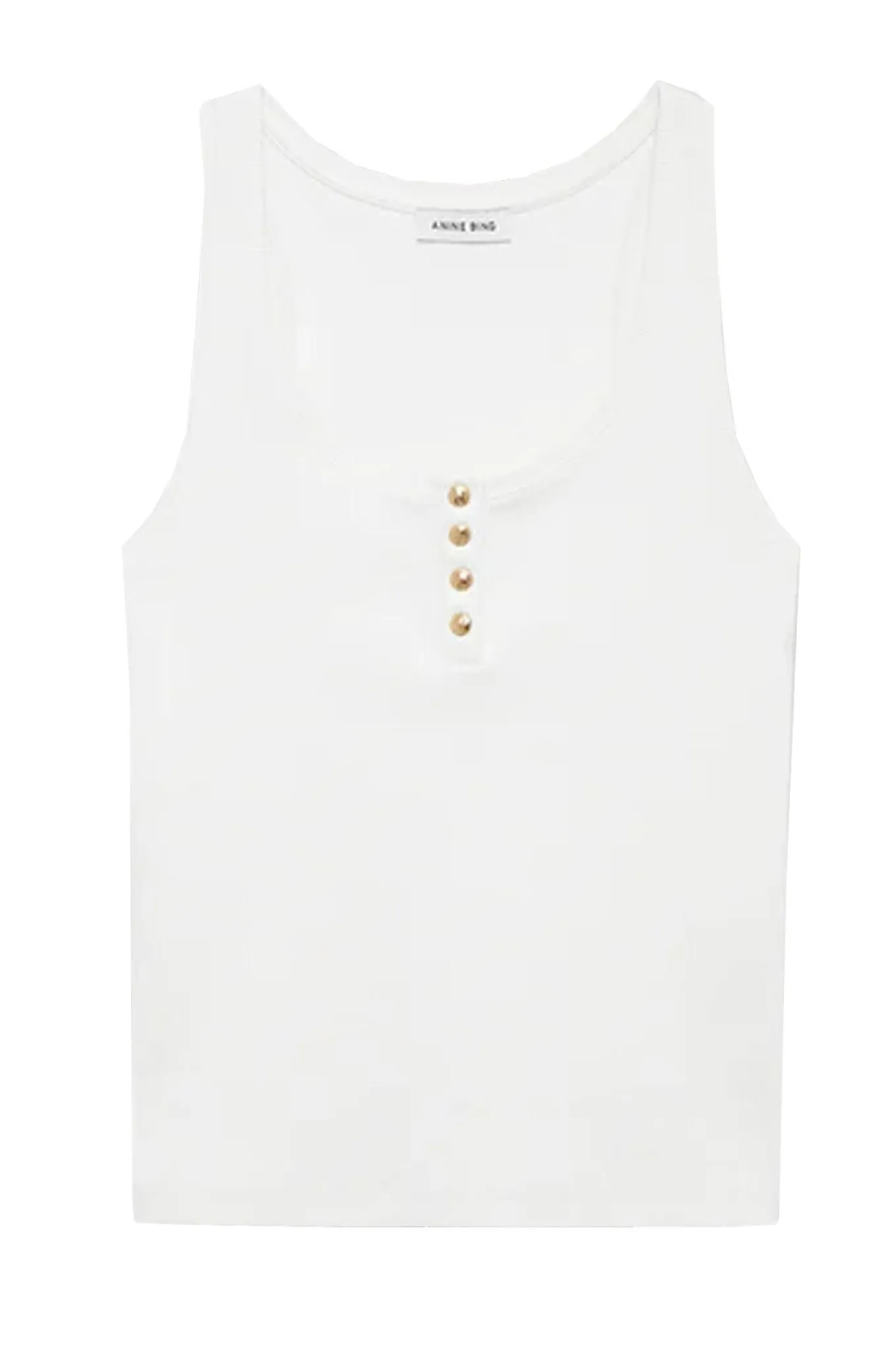 - Moderne Henley-inspireret tank top fra Anine Bing i en lækker ribbet kvalitet med fine små guld-monogram knapper over brystet.