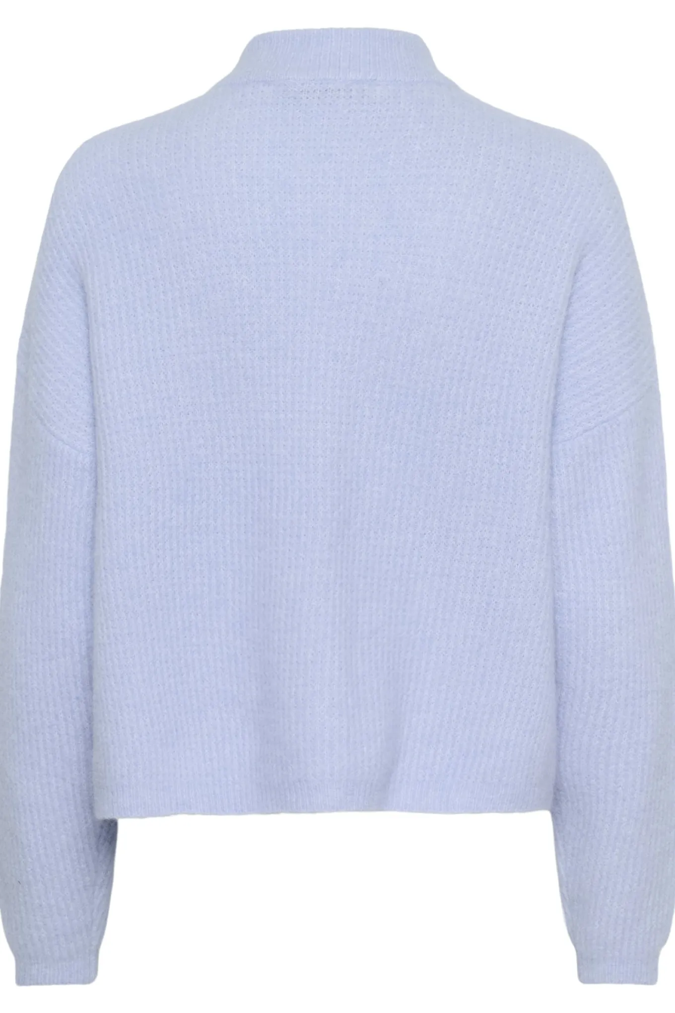 Få et tidløst og elegant look med denne bløde strik fra Gestuz. Den flotte Centaurea Mélange farve og blandingen af alpaka, uld, polyester og elastan giver et luksuriøst udtryk. Perfekt til enhver lejlighed.