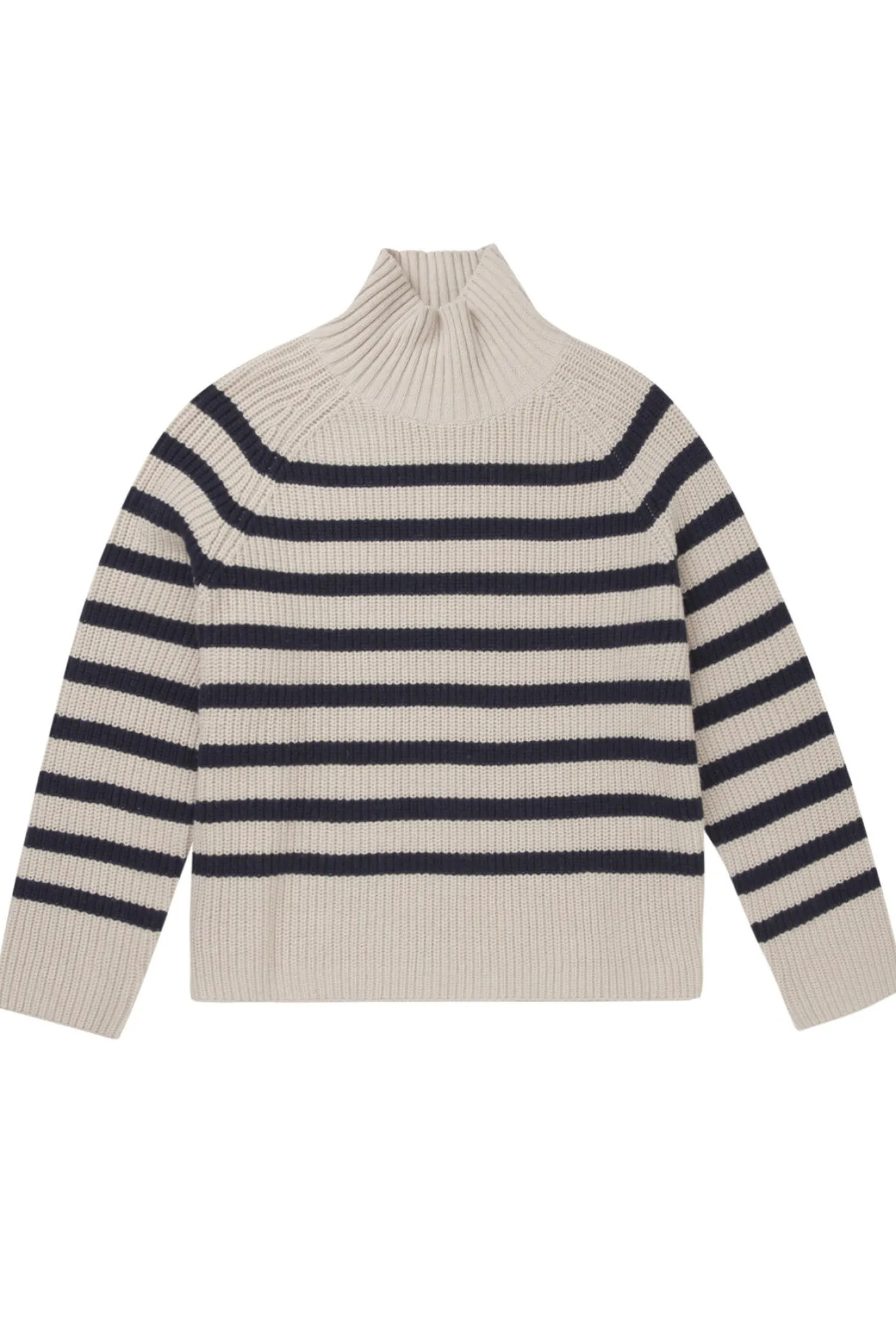 Flot strik fra Munthe med lange ærmer, høj hals og en lækker blød kvalitet.Strikken har også en afslappet pasform og fine striber.
