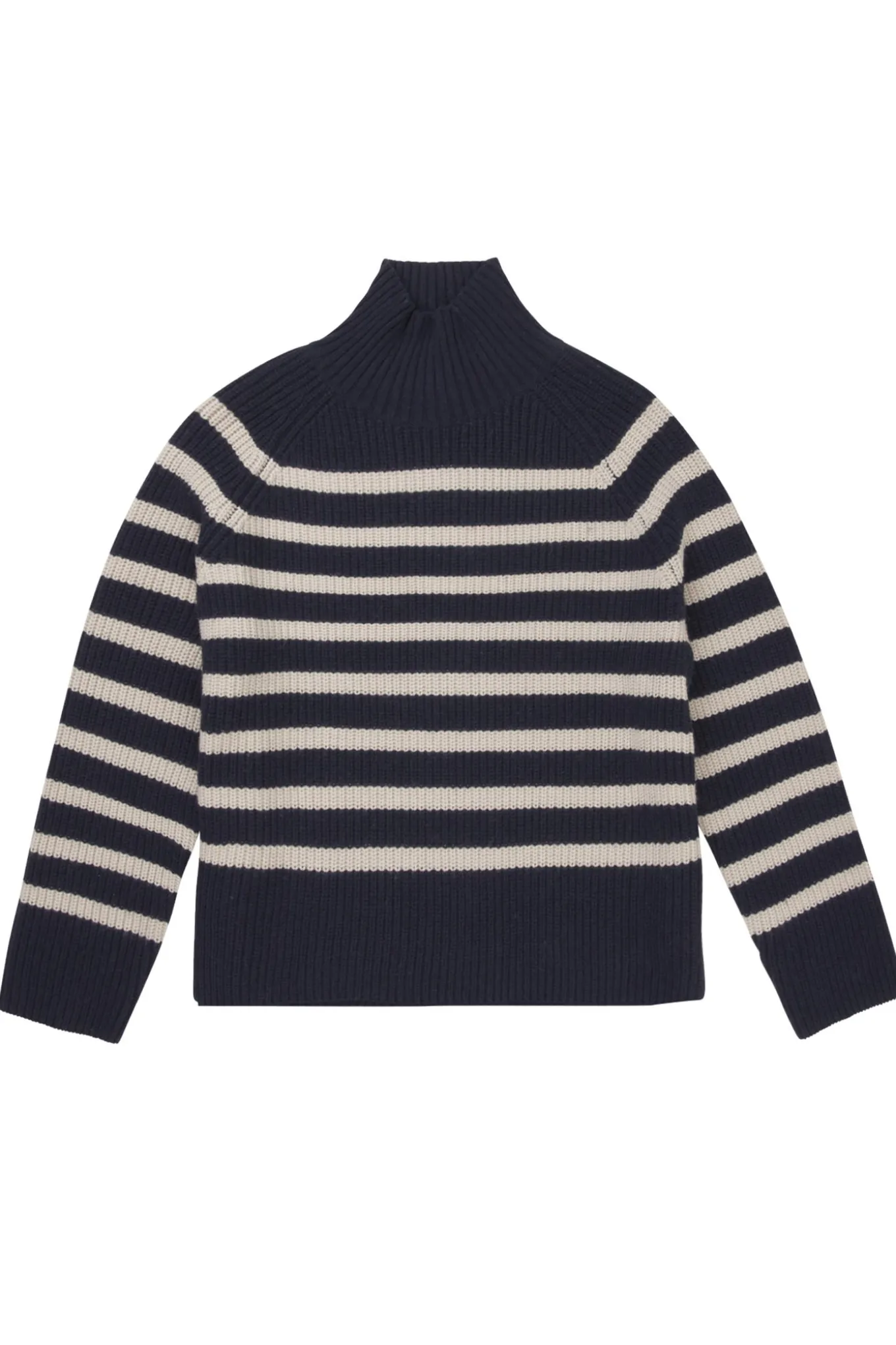 Flot strik fra Munthe med lange ærmer, høj hals og en lækker blød kvalitet.Strikken har også en afslappet pasform og fine striber.