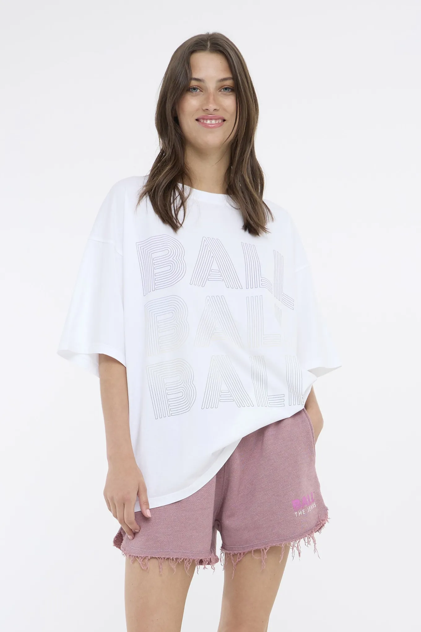 OBS! Fjernlager. Levering kan blive forlænget med 2-3 dage, hvis varen ikke findes i vores butik lige nu.Smart oversized tee fra Ball med ½ lange brede ærmer og rund hals.