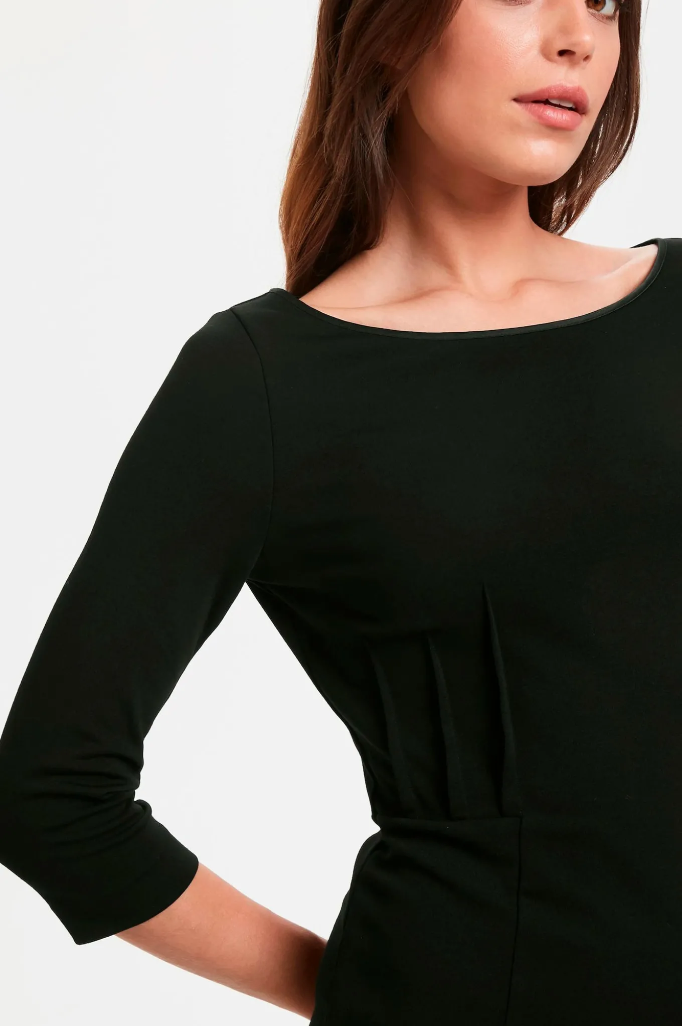 Levering kan blive forlænget med 1-2 dage, hvis varen ikke findes i vores butik lige nu.Tætsiddende feminin kjole fra Inwear. Kjolen har lange ærmer, bred rund hals og et klassisk elegant look.