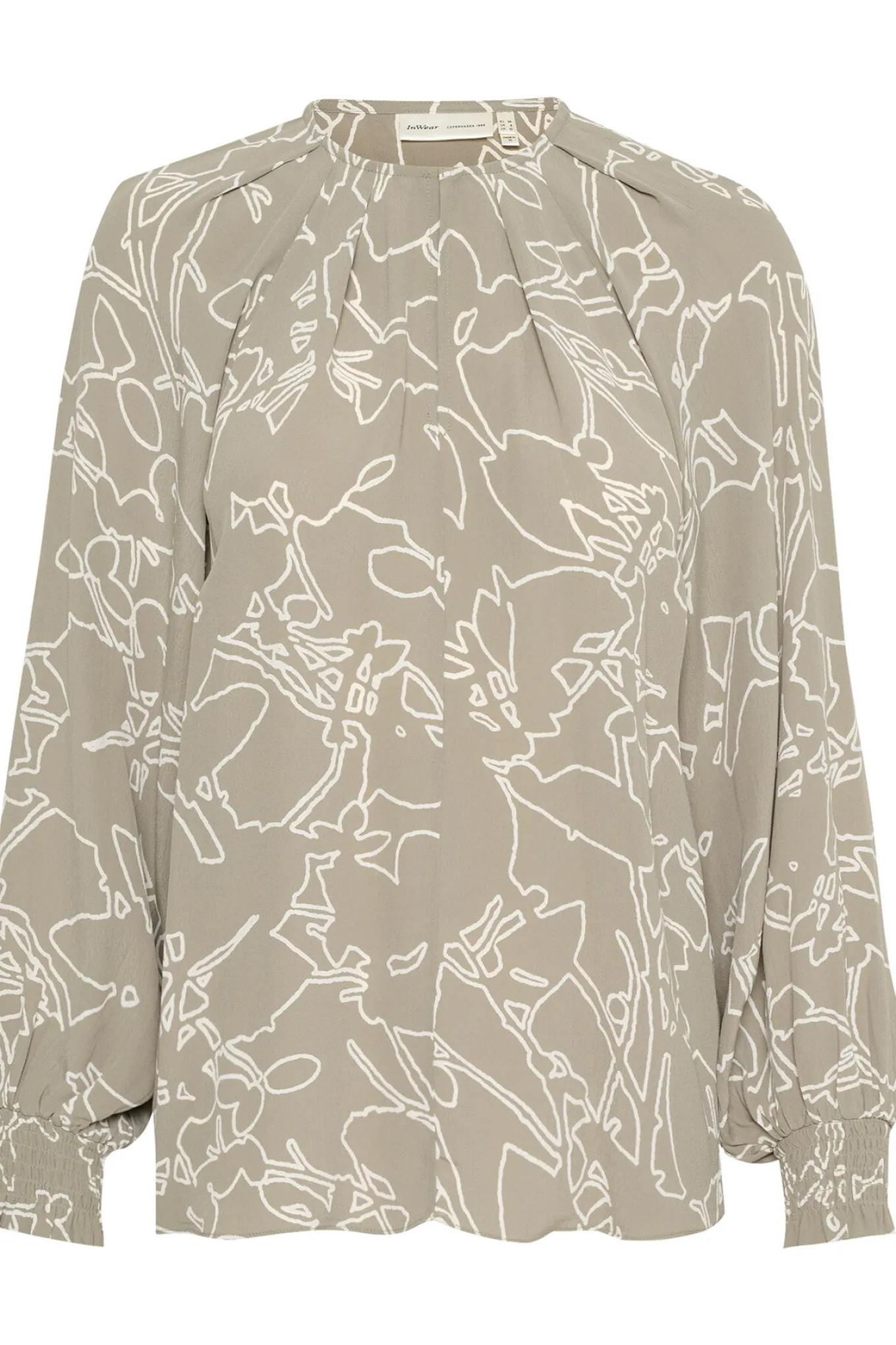 OBS! Fjernlager. Levering kan blive forlænget med 2-3 dage, hvis varen ikke findes i vores butik lige nu.Flot bluse fra InWear med lange pufærmer, rund hals og tætsiddende smock manchetter. Blusen har også en afslappet silhuet med et flot print.