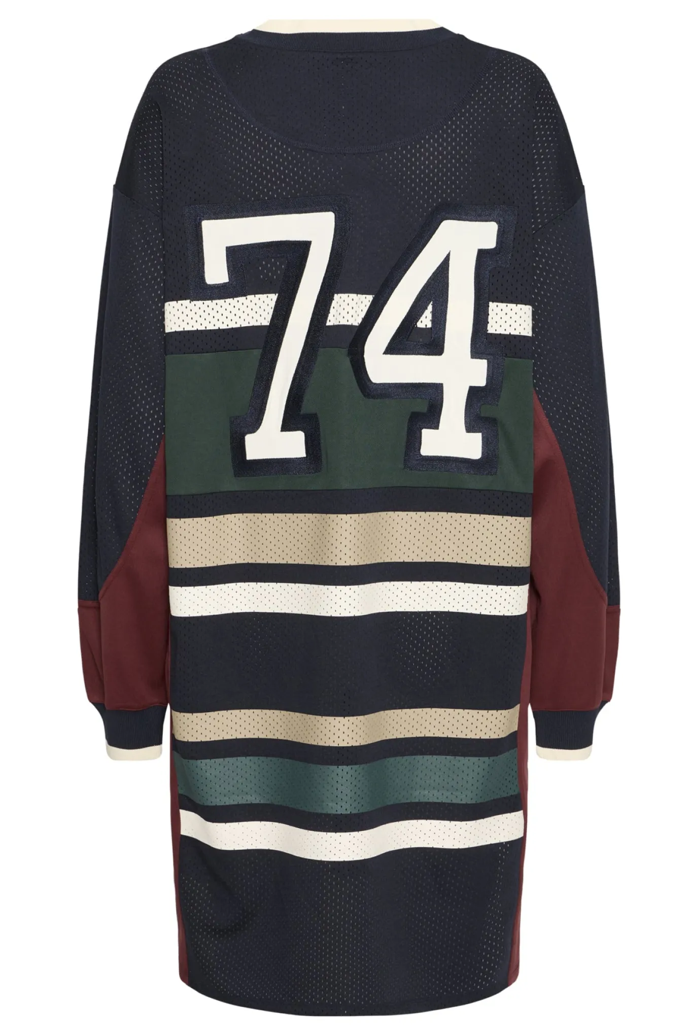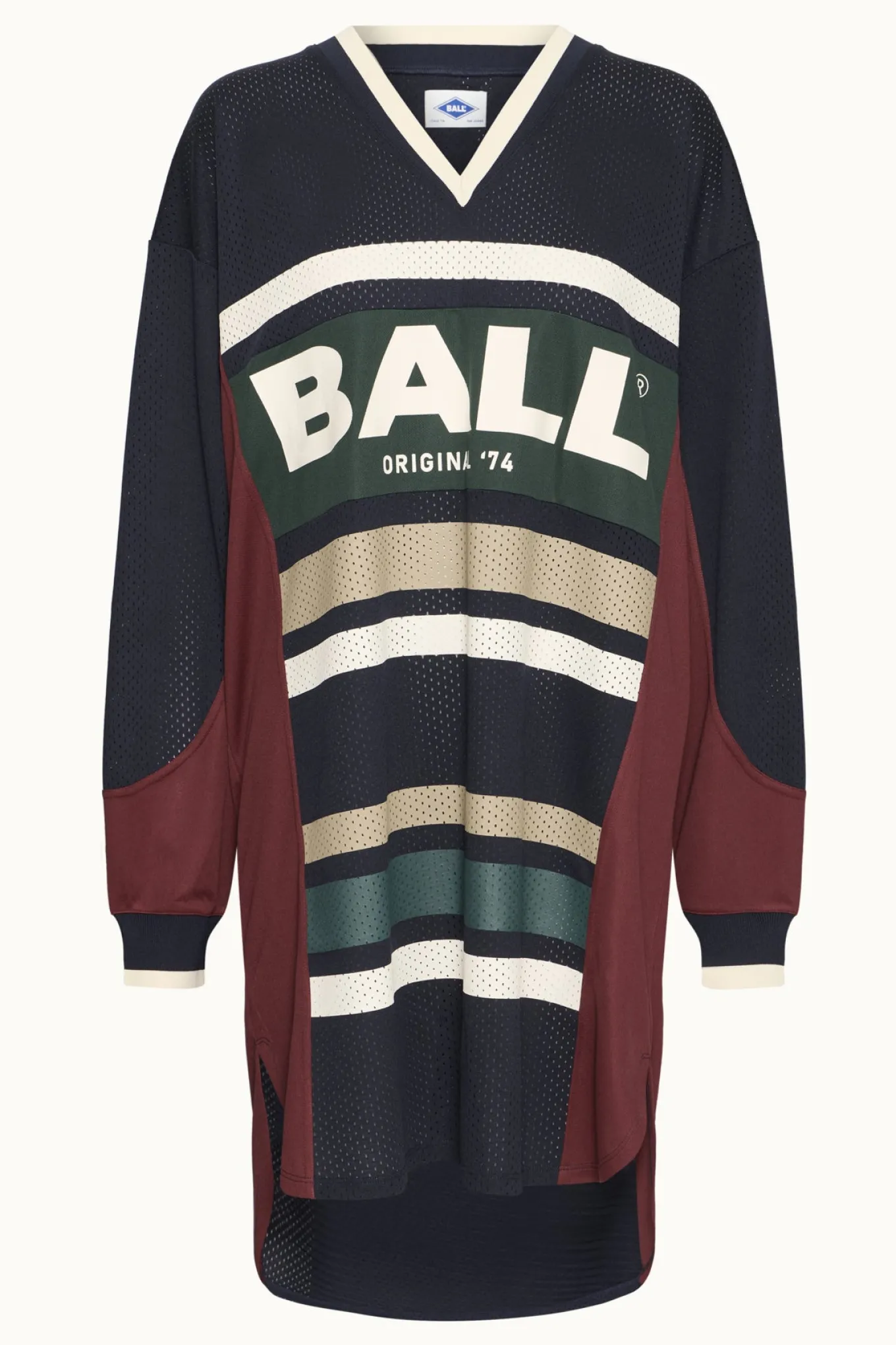 OBS! Fjernlager. Levering kan blive forlænget med 2-3 dage, hvis varen ikke findes i vores butik lige nu.Super cool kjole fra Ball med lange ærmer, v-udskæring i halsen og et smart sporty udtryk.
