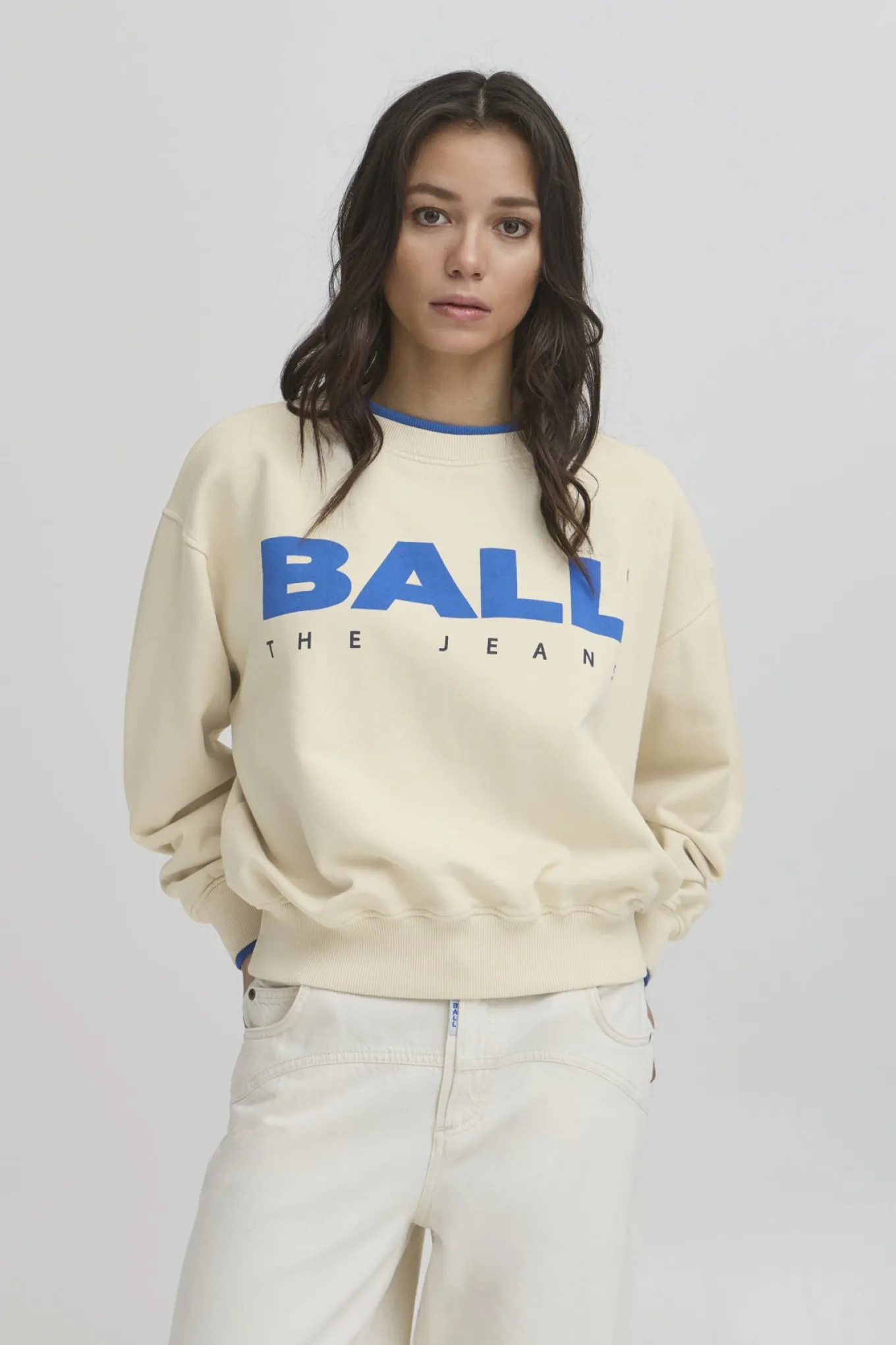 Oplev komfort og stil med denne økologiske sweatshirt i en smuk birkefarvet nuance med Olympia Blue detaljer. Fra Ball, lavet af 100% bomuld.
