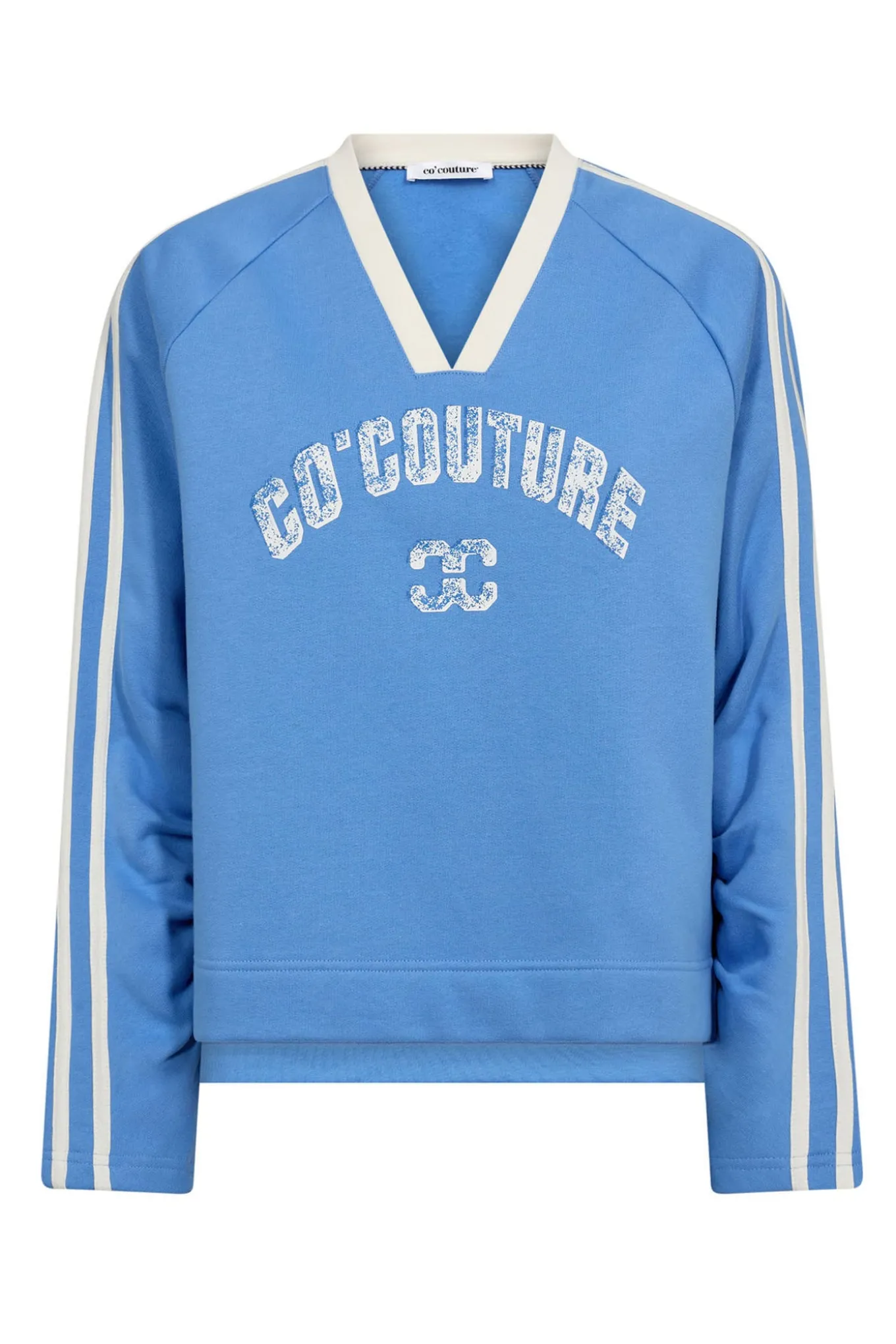 Sporty sweatshirt fra Co’couture med lange ærmer, v-udskæring i halsen og et cool slidt logo på brystet.