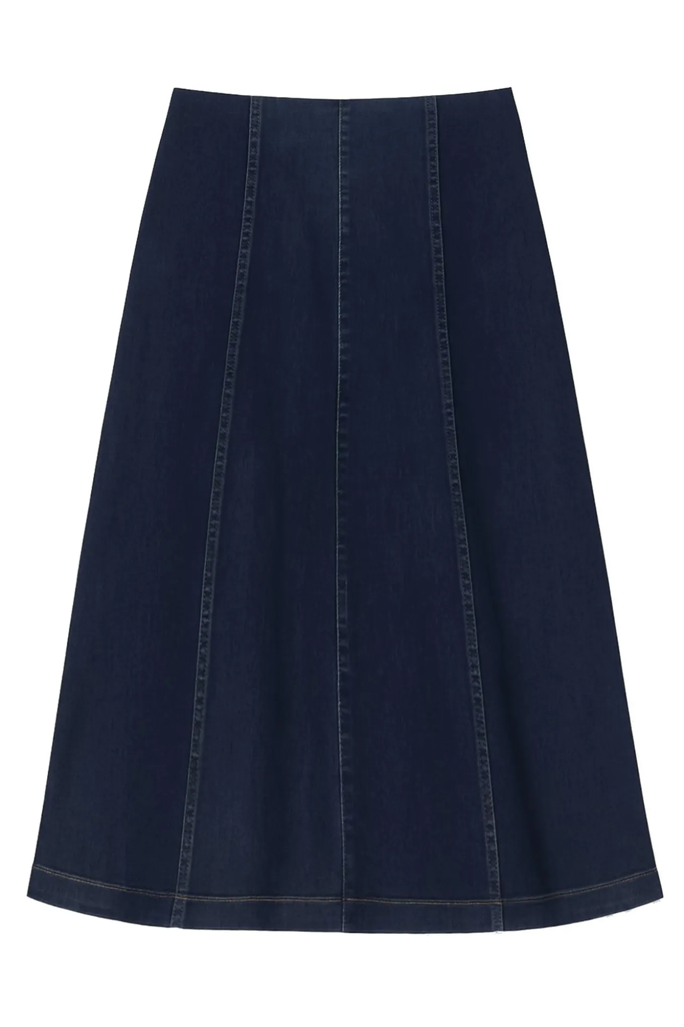 OBS! Fjernlager. Levering kan blive forlænget med 2-3 dage, hvis varen ikke findes i vores butik lige nu.Flot denim nederdel fra 2-Biz med et klassisk A-snit, smarte syninger og en fin mørkeblå vask.