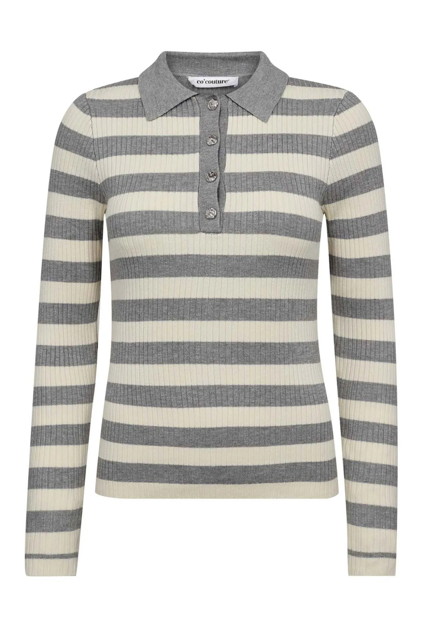 BonnyCC Stripe L/S Polo Knit 138Light Grey 42009