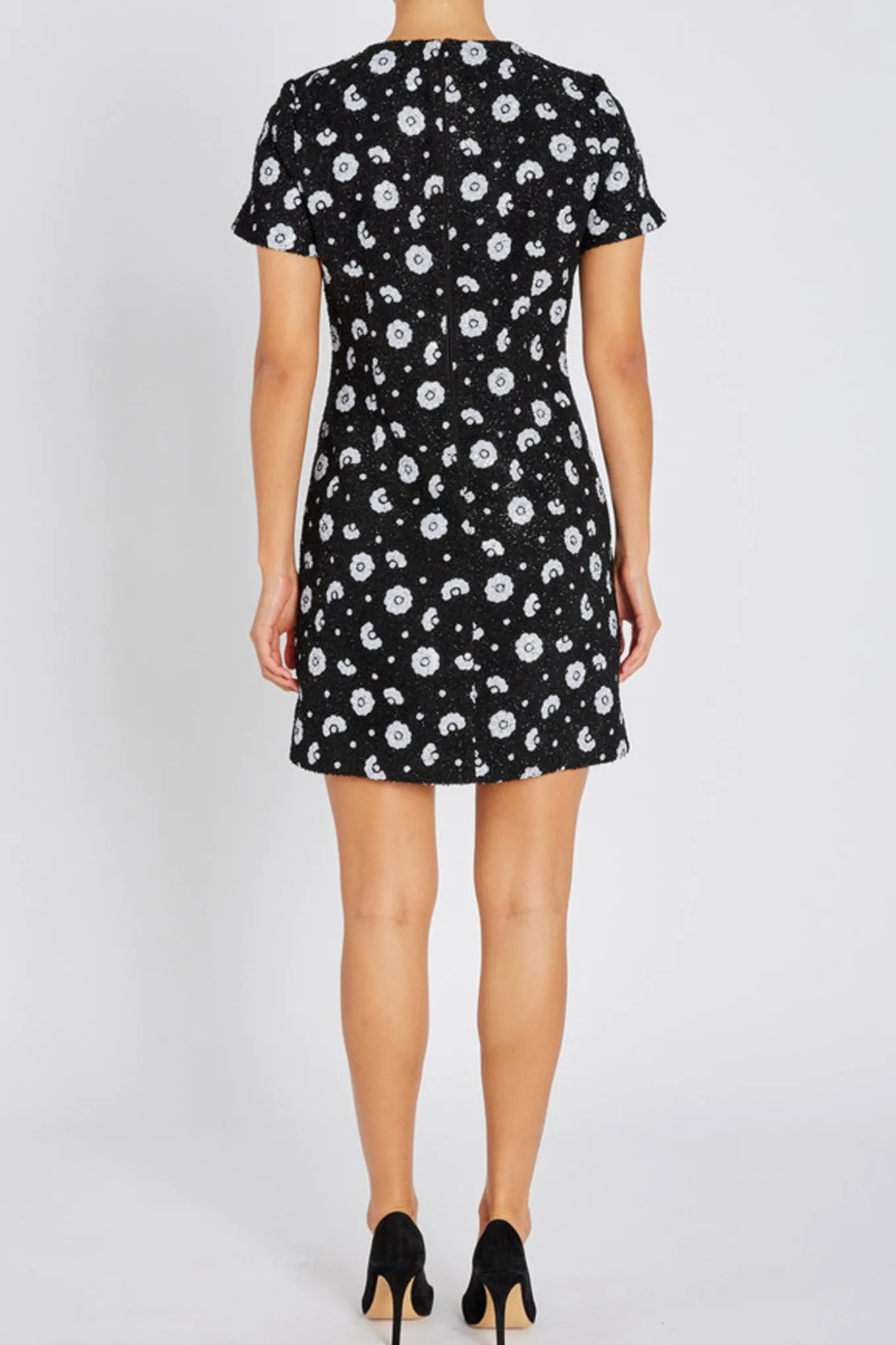 Kort kjole med korte ærmer, en lige pasform og fuld pailletbroderi i et blomsterdesign. En iøjnefaldende stil med en funklende finish og moderne elegance.
