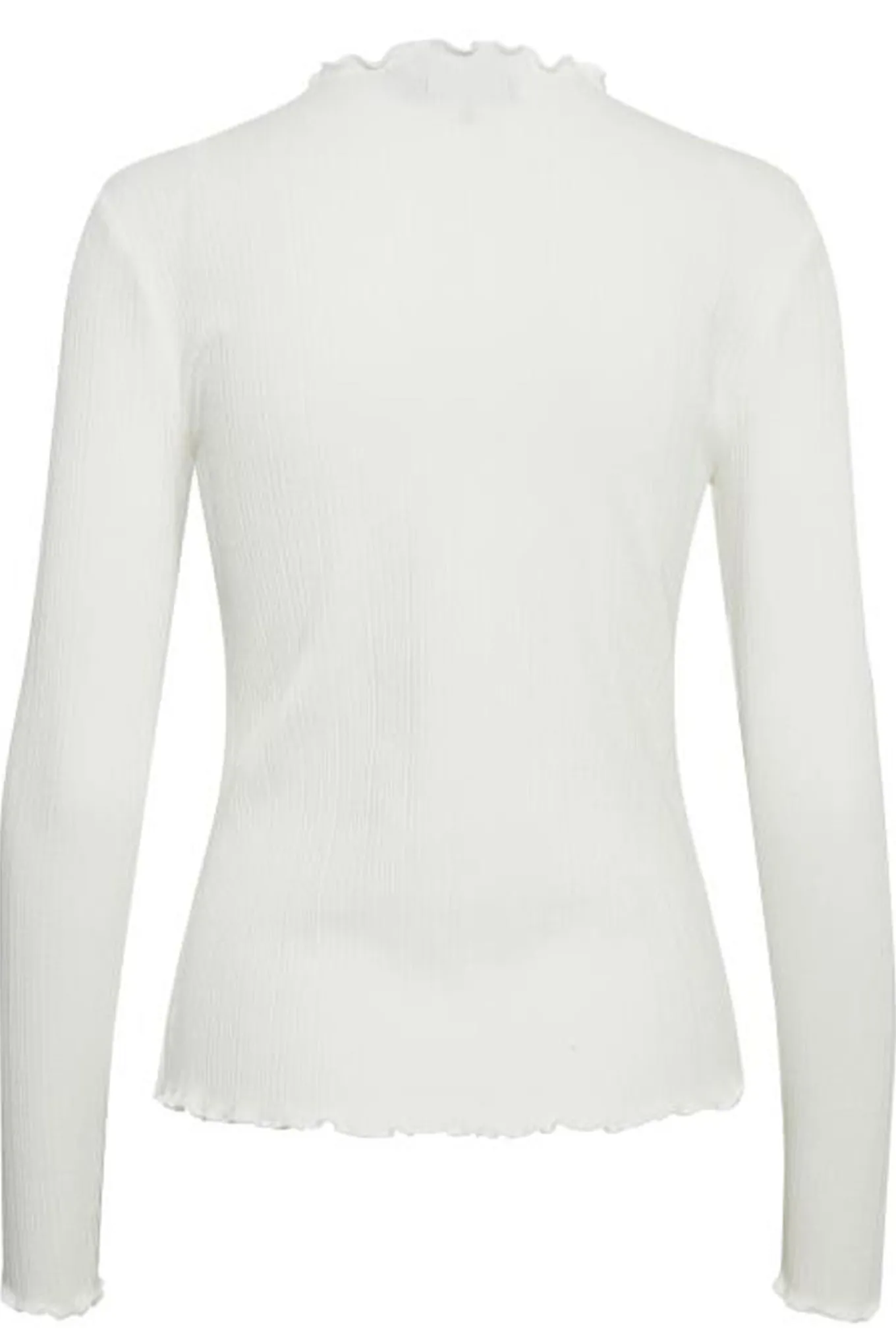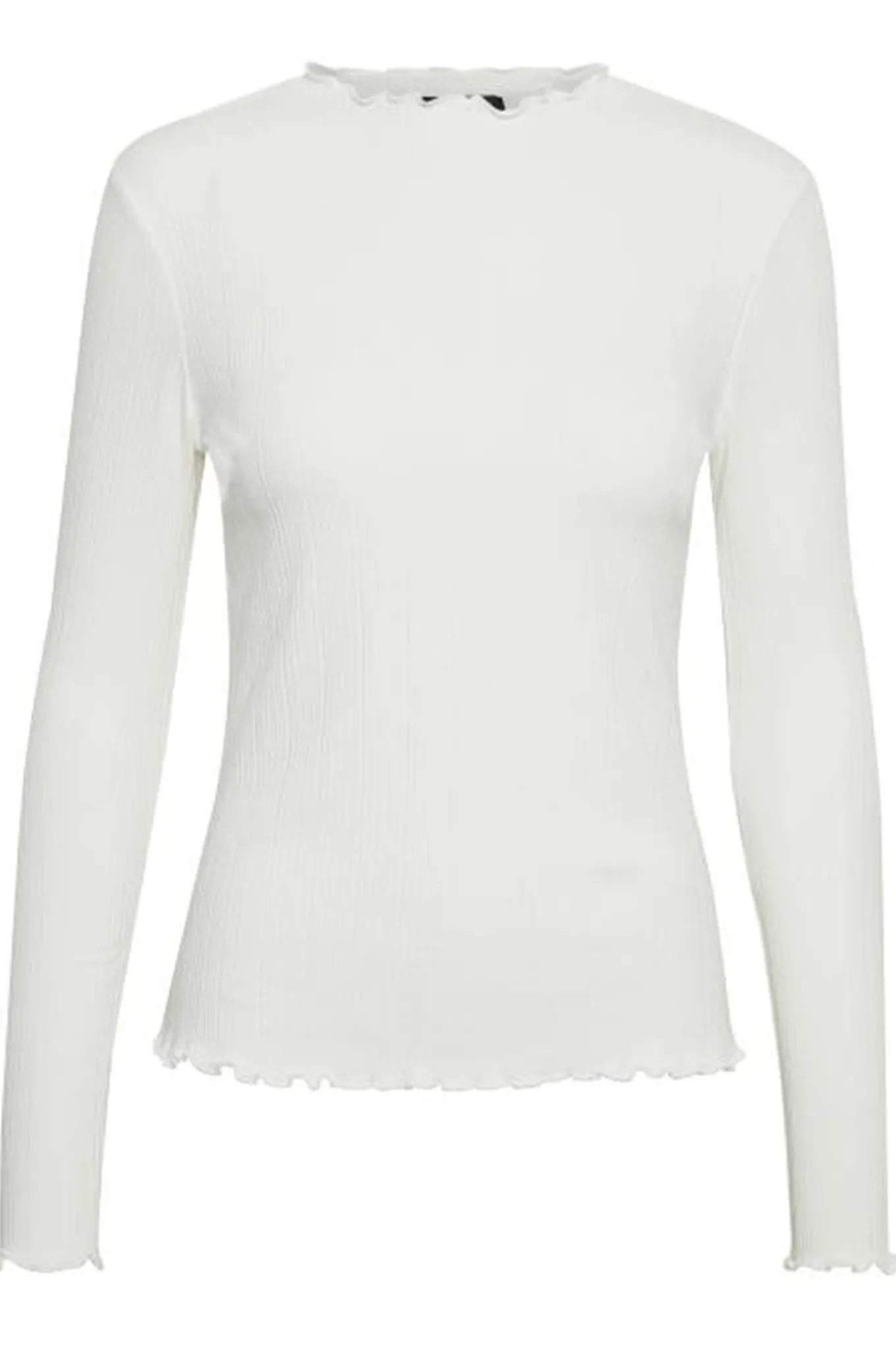 Levering kan blive forlænget med 1-2 dage, hvis varen ikke findes i vores butik lige nu.Flot t-shirt fra Karen By Simonsen med lange ærmer og fine rynkekanter.