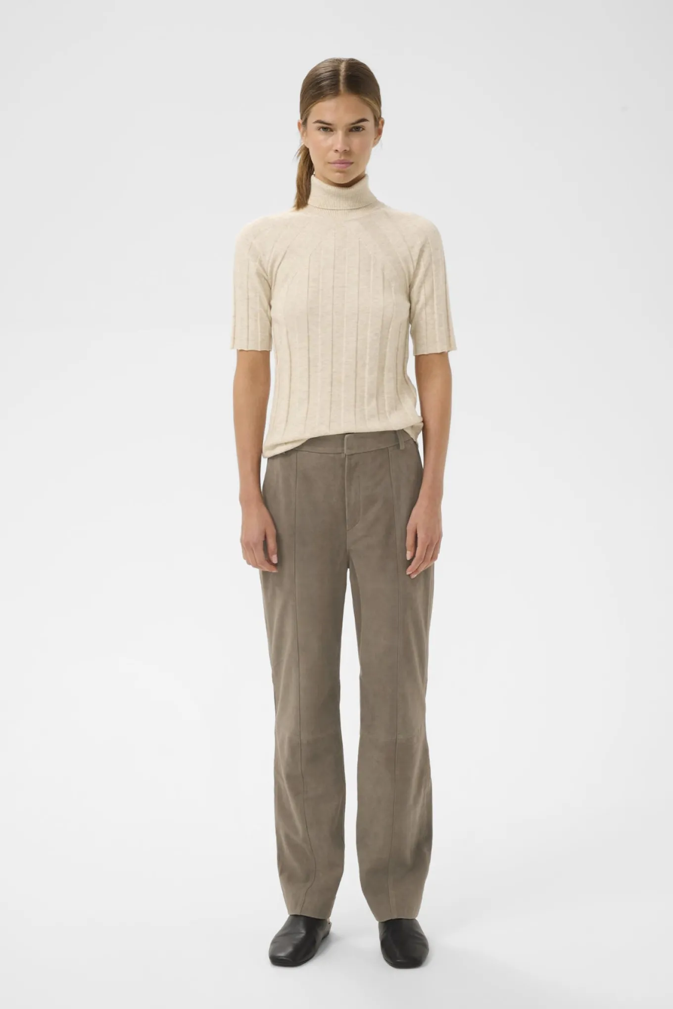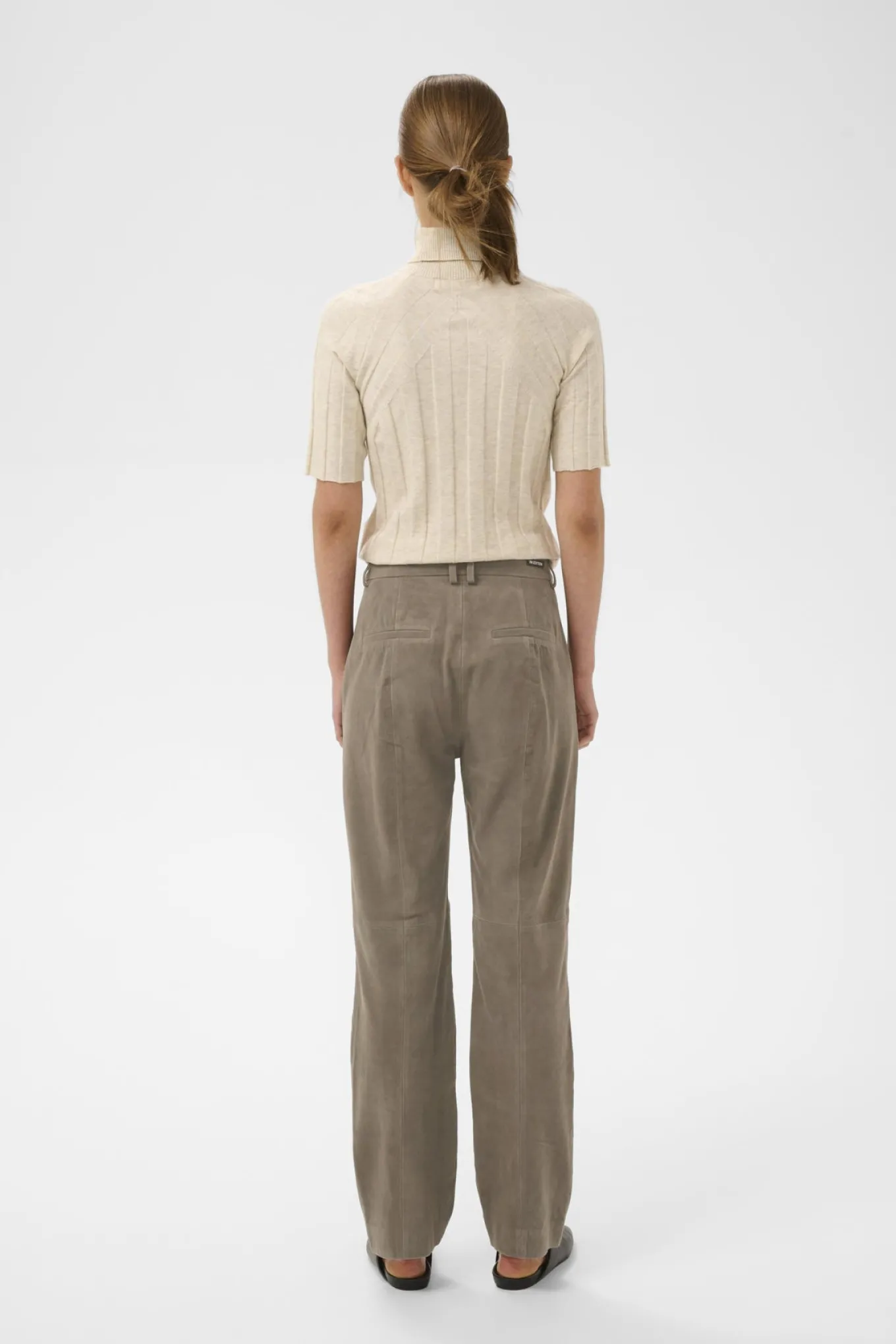 Få et elegant og tidløst look med disse bukser fra Inwear. Fremstillet i 100% Goat Suede i farven Sandy Grey, er de perfekte til både hverdag og fest.