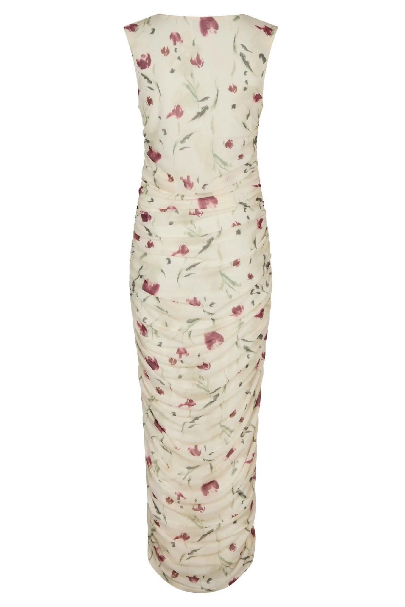 OBS! Fjernlager. Levering kan blive forlænget med 2-3 dage, hvis varen ikke findes i vores butik lige nu.Den smukkeste kjole fra Neo Noir med bådudskæring i halsen, en tætsiddende silhuet og flotte draperet effekter.Kjolen har også et romantisk print og en dejlig blød kvalitet.