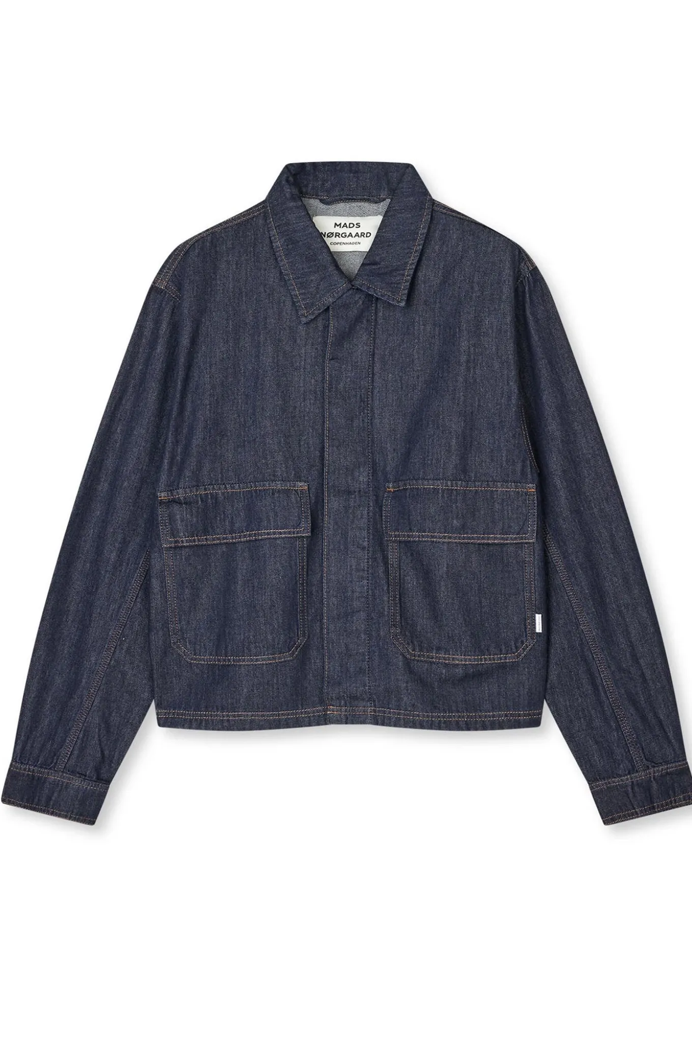 Opdater din garderobe med denne lækre jakke fra Mads Nørgaard. Den er lavet af 100% økologisk bomuld i en smuk mørkeblå farve. Perfekt til enhver lejlighed.