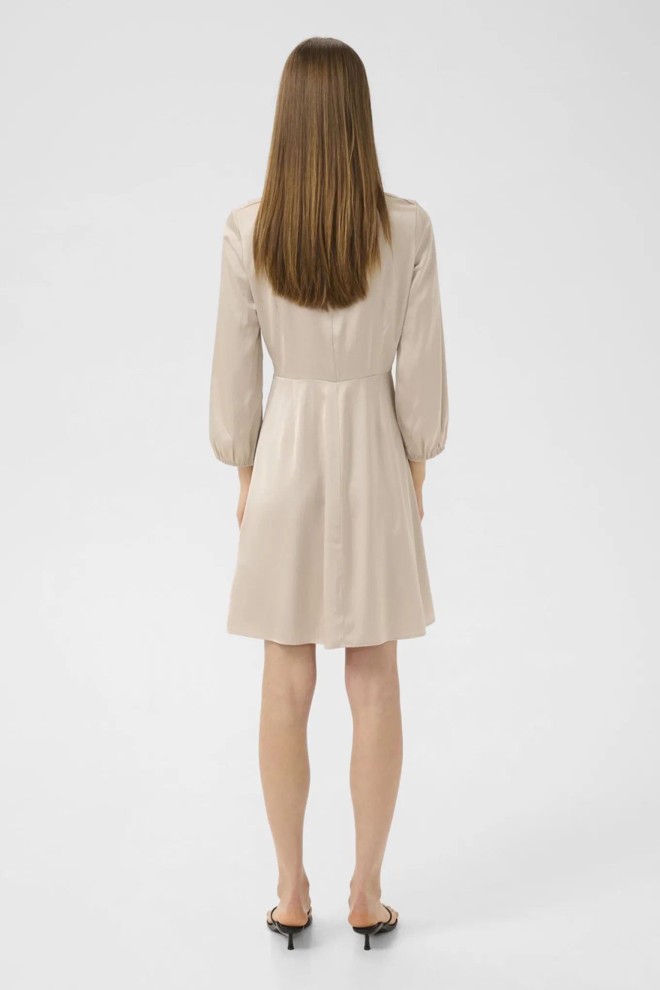 Forkæl dig selv med denne stilfulde champagnefarvede kjole fra Inwear. Lavet af genanvendt polyester og viskose, er den både bæredygtig og elegant. Perfekt til enhver lejlighed.