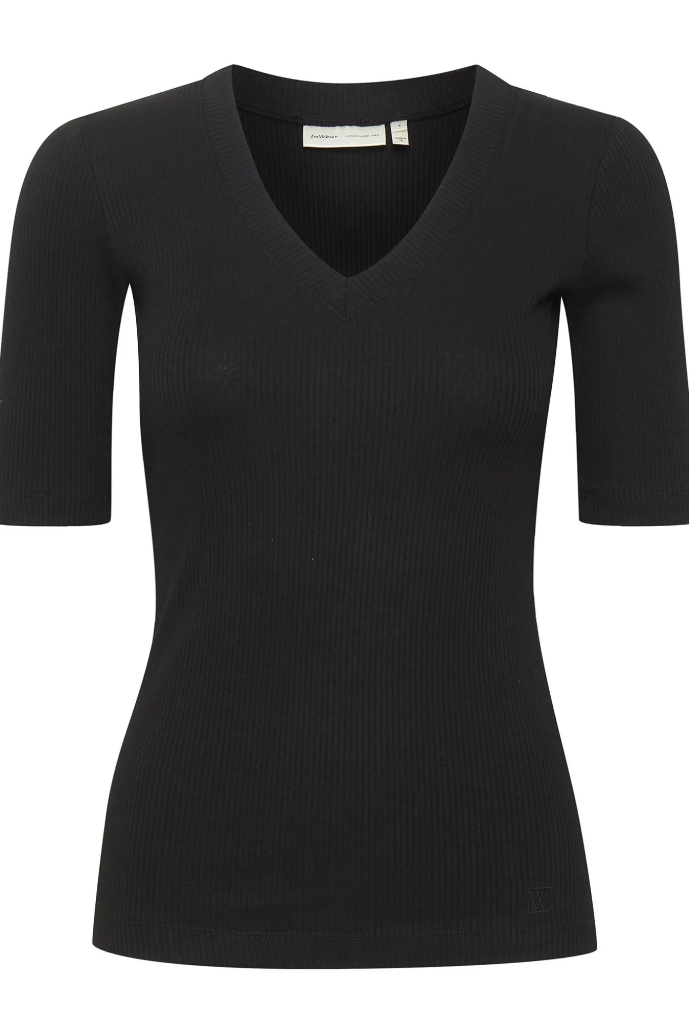 OBS! Fjernlager. Levering kan blive forlænget med 1-2 dage, hvis varen ikke findes i vores butik lige nu.Smart basis t-shirt fra InWear med ½ lange ærmer og blød v-hals.