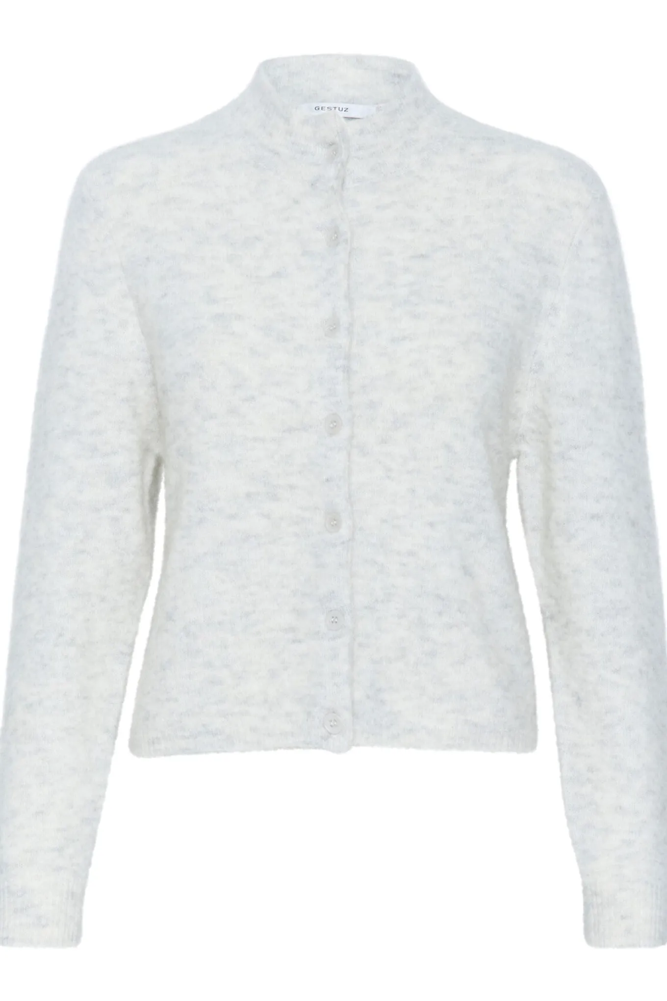 OBS! Fjernlager. Levering kan blive forlænget med 2-3 dage, hvis varen ikke findes i vores butik lige nu.Blød og lækker cardigan fra Gestuz med lange ærmer, høj hals og en dejlig afslappet silhuet.