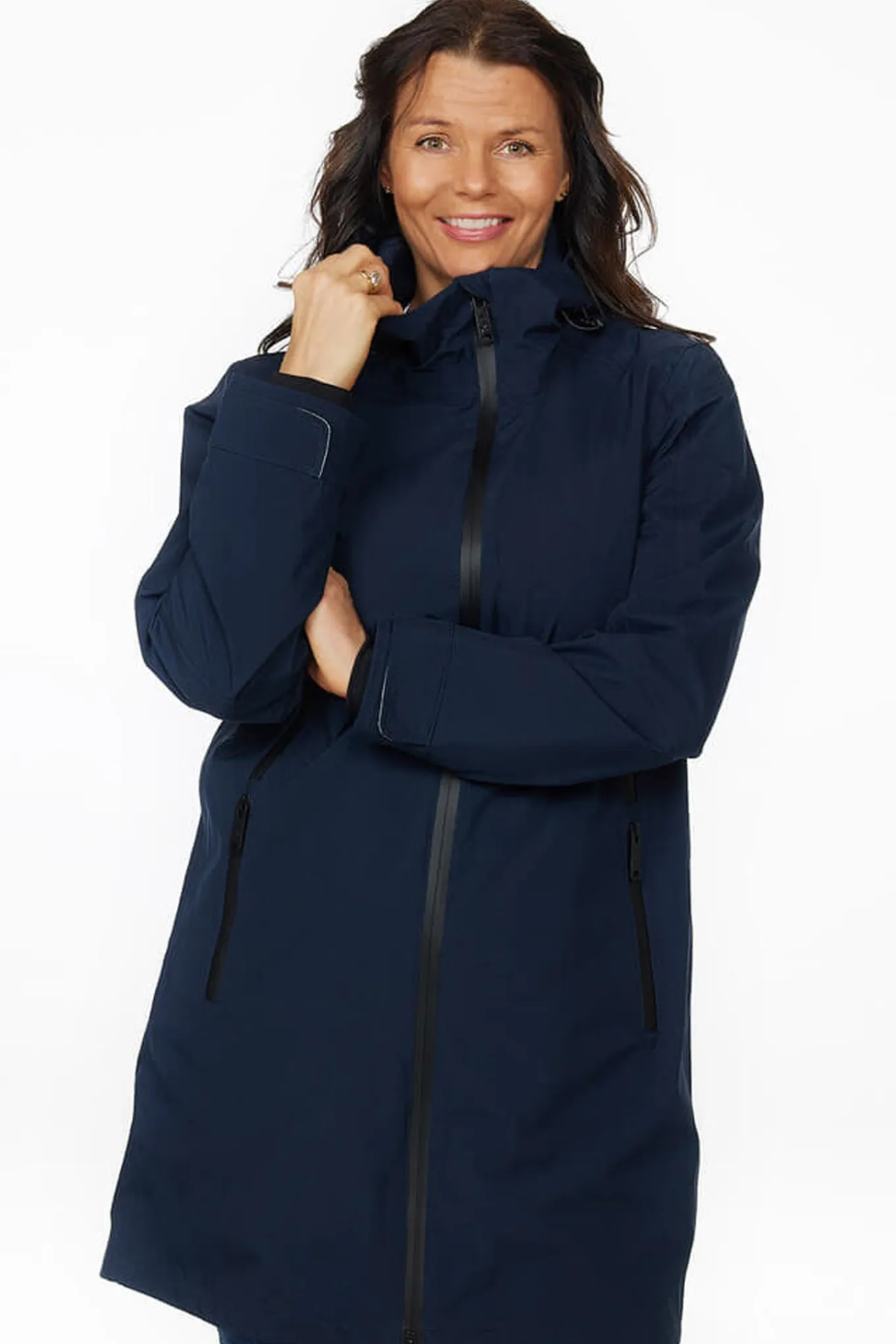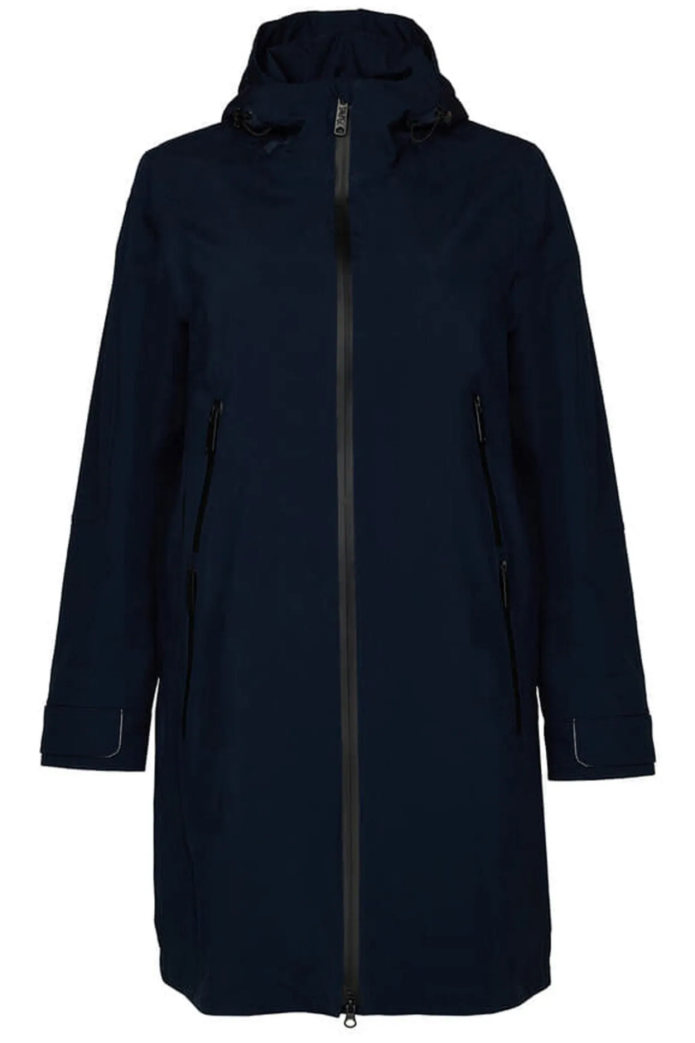 OBS! Fjernlager. Levering kan blive forlænget med 2-3 dage, hvis varen ikke findes i vores butik lige nu.En ekslusiv og meget anvendelig regnfrakke til den stilbevidste dame. Med det uforudsigelige klima og vejr, vi har i Danmark, er en god regnjakke en uundværlig beklædningsgenstand. Modellen fra Danwear med tapede sømme er vandtæt, vindtæt, åndbar og har en BIONIC FINISH ECO. Den har en rigtig god pasform samt en slids som giver denne frakke en rigtig god bevægelighed. Desuden har den en praktisk hætte som kan justeres, mange lommer med lynlåse og en inderlomme med knap. En meget behagelig model i lækker kvalitet som sikrer rigtig god beskyttelse mod vind og vejr.