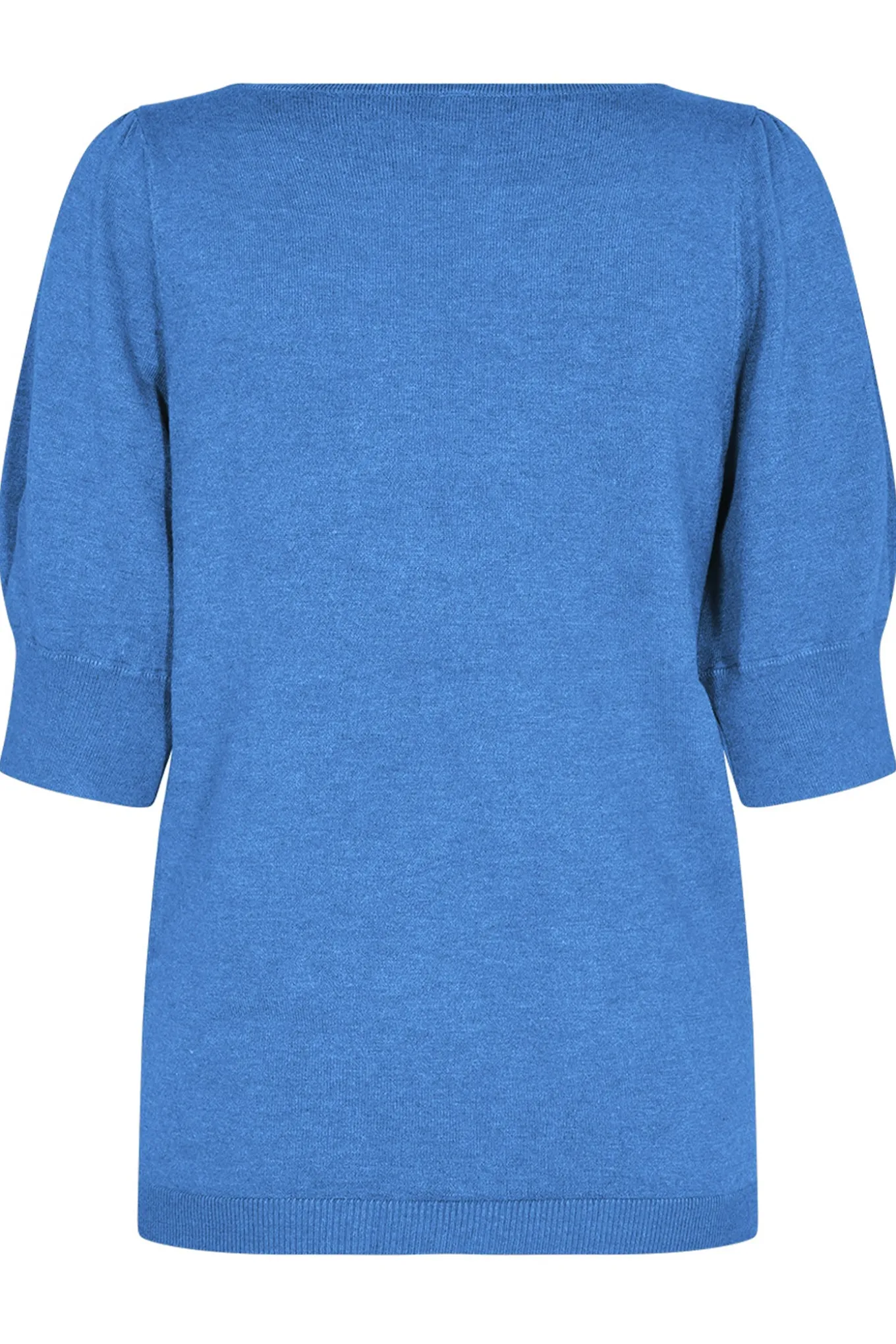 Blød og lækker strik fra Soyaconcept med korte ærmer, bådudskæring i halsen og et fint enkelt udtryk.