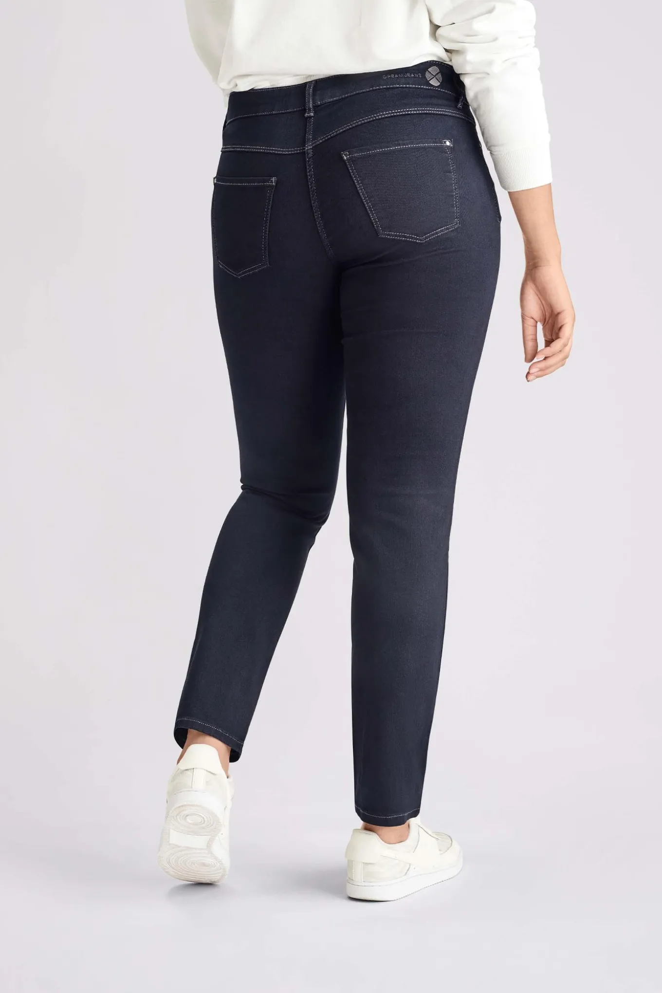 OBS! Fjernlager. Levering kan blive forlænget med 2-3 dage, hvis varen ikke findes i vores butik lige nu.Smarte jeans fra Mac med et straight-leg snit, en feminin silhuet og en flot blå vask.Bukserne har også en lækker kvalitet og lukkes med knap og lynlås i fronten.