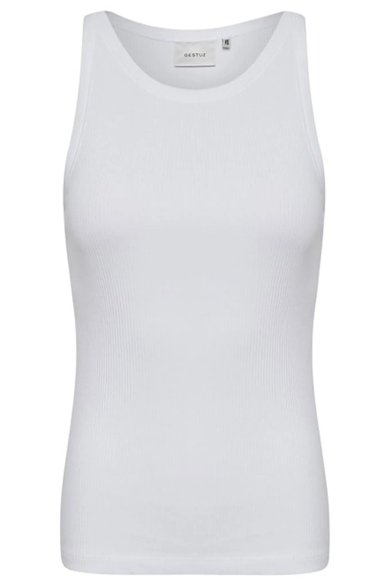 - Smart basis top fra Gestuz i en fin ribbet kvalitet og tætsiddende pasform.