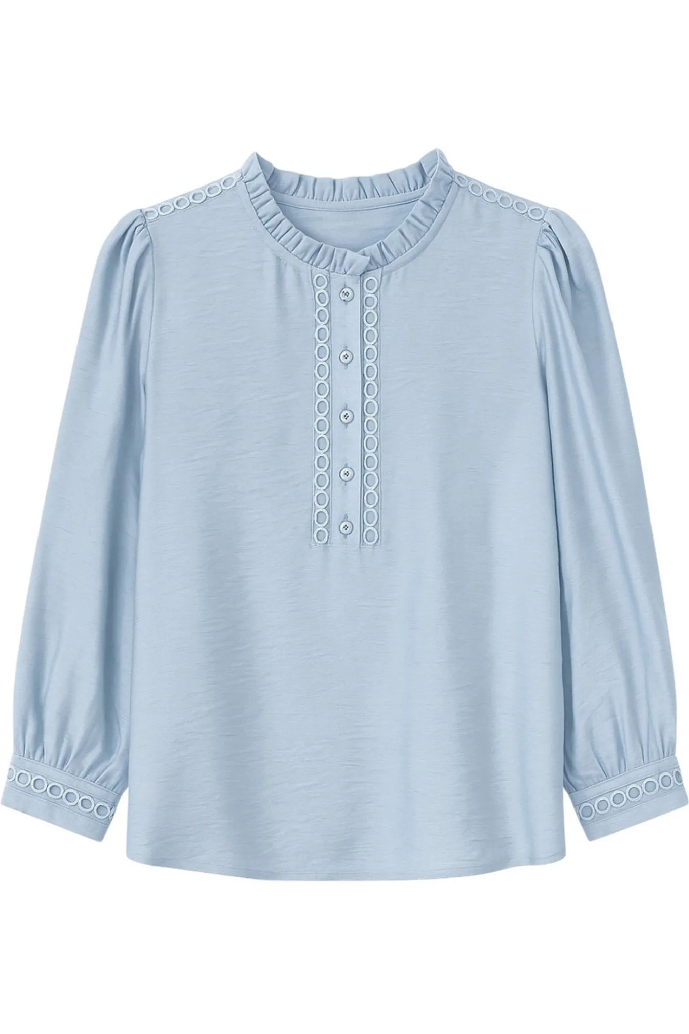 Få et frisk og elegant look med denne lette bluse fra 2-BIZ. Den lyseblå farve og blandingen af bomuld og polyamid giver blusen et moderigtigt udseende. Perfekt til enhver lejlighed.