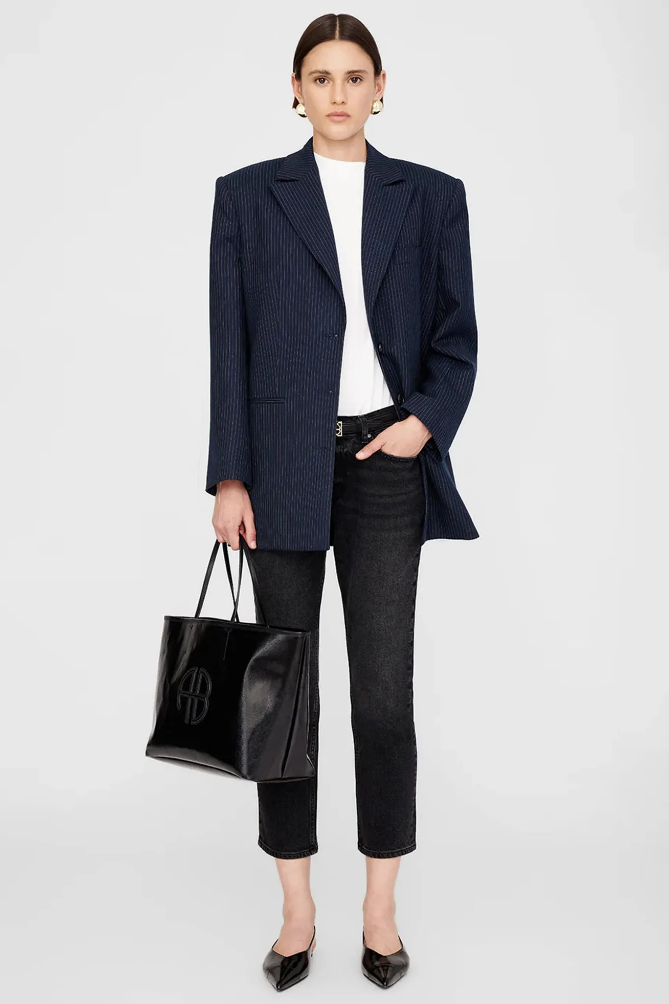 - OBS! Fjernlager. Levering kan blive forlænget med 2-3 dage, hvis varen ikke findes i vores butik lige nu.Elegant taske fra Anine Bing med et stilrent udtryk, smalle bærehanke og et flot præget logo på fronten.