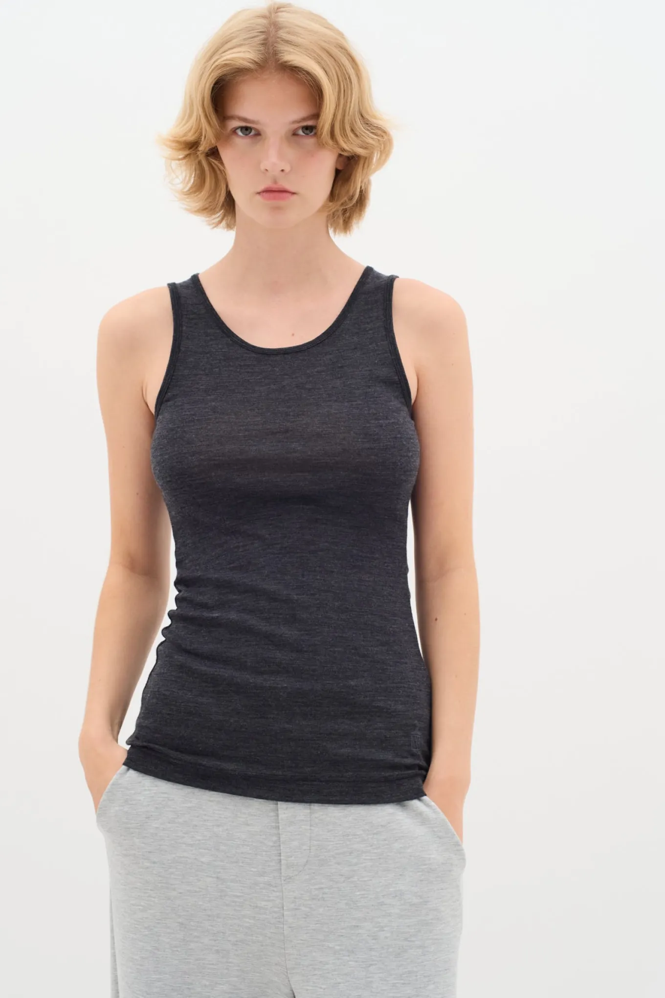 OBS! Fjernlager. Levering kan blive forlænget med 1-2 dage, hvis varen ikke findes i vores butik lige nu.Flot basis top fra InWear med brede skulderstropper og rund hals.