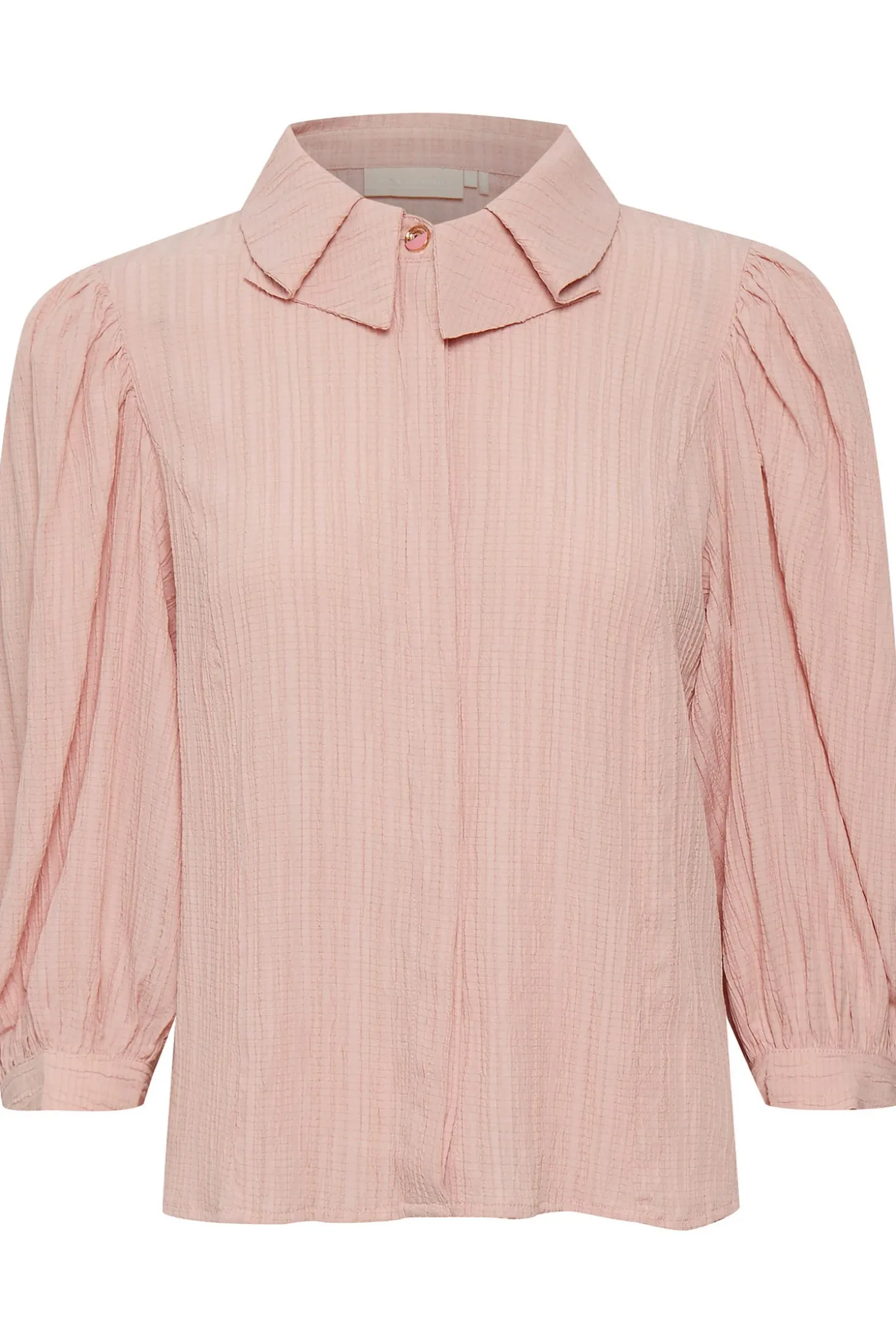 Levering kan blive forlænget med 1-2 dage, hvis varen ikke findes i vores butik lige nu.Feminin og elegant bluse fra Karen By Simonsen med 3/4 lange pufærmer og en super fin krave i halsen.