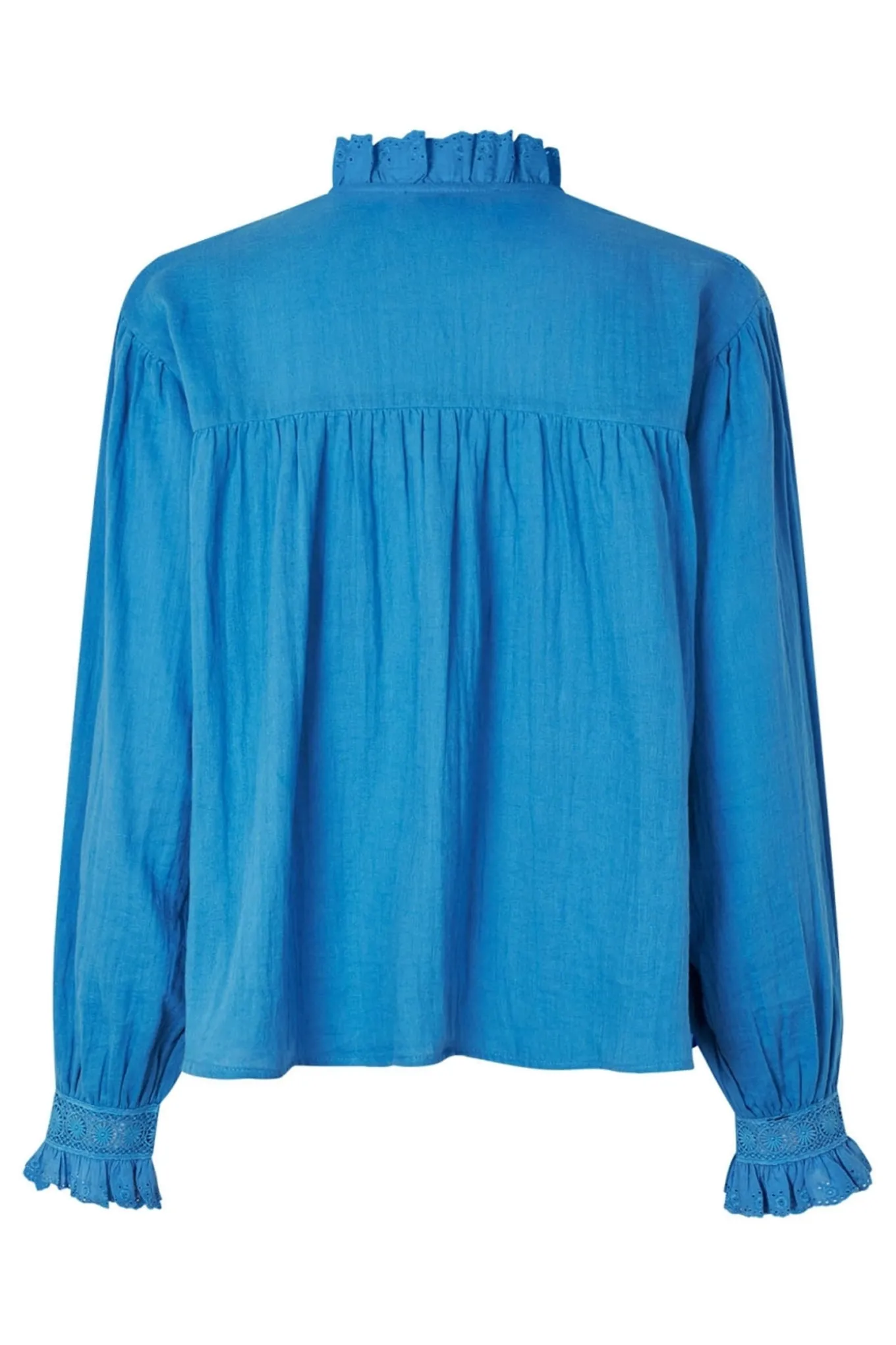 Skab et frisk og trendy udtryk med denne langærmede bluse i smuk neon blå fra Lollys Laundry. Fremstillet i blød viscose, der sikrer en let og behagelig pasform.