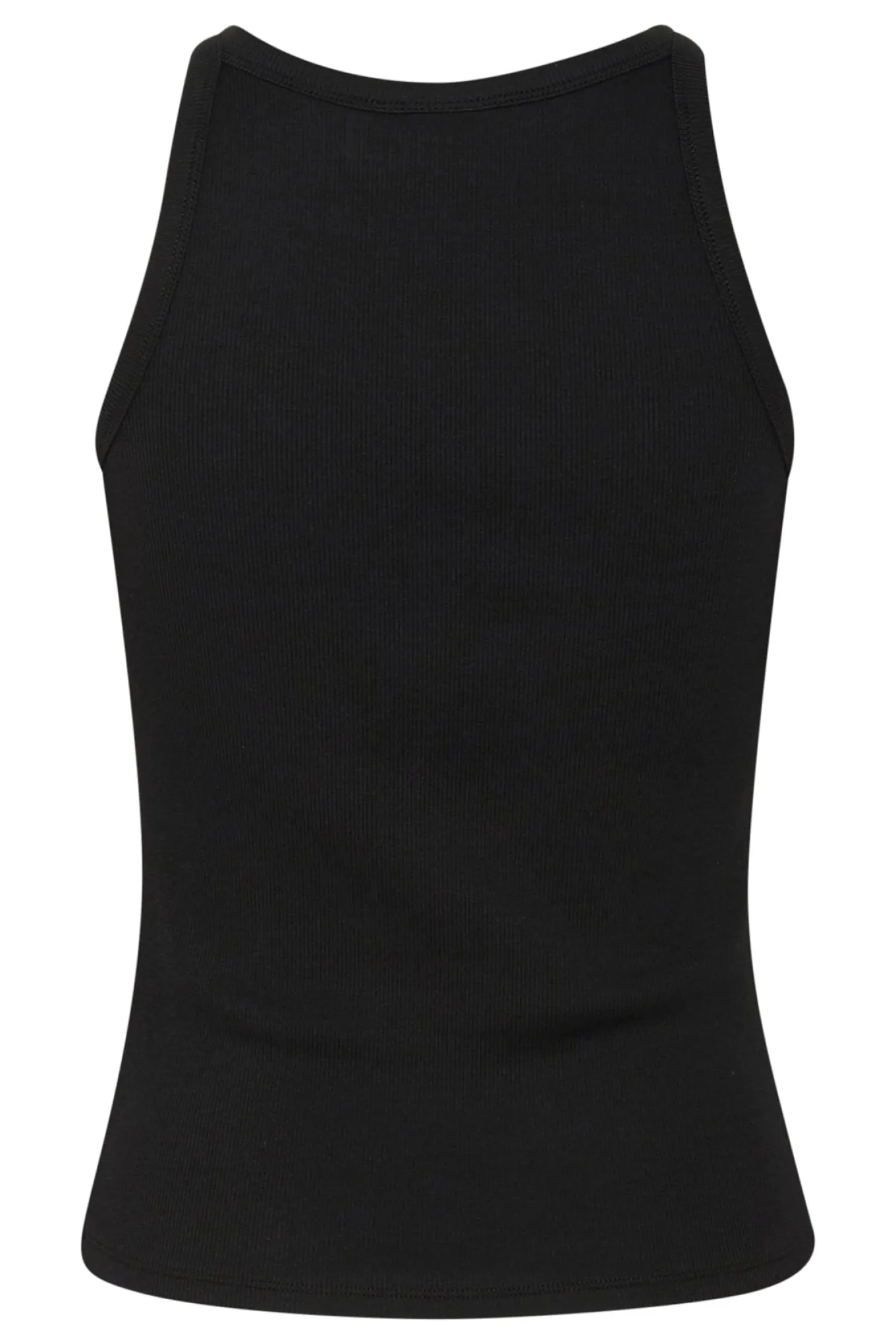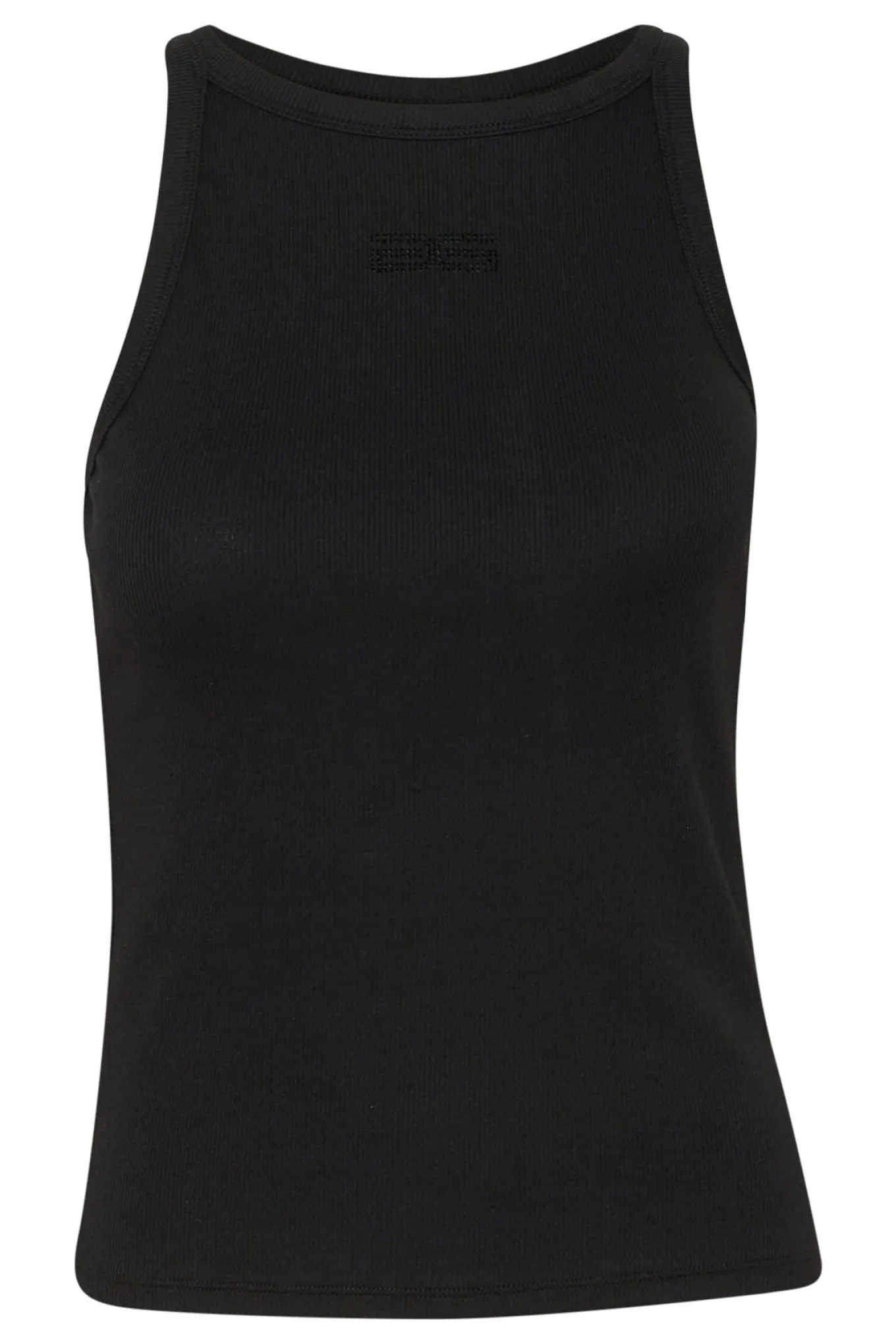 OBS! Fjernlager. Levering kan blive forlænget med 2-3 dage, hvis varen ikke findes i vores butik lige nu.Smart ribbet tank top fra Gestuz med rund hals og et fint lille logo over brystet.