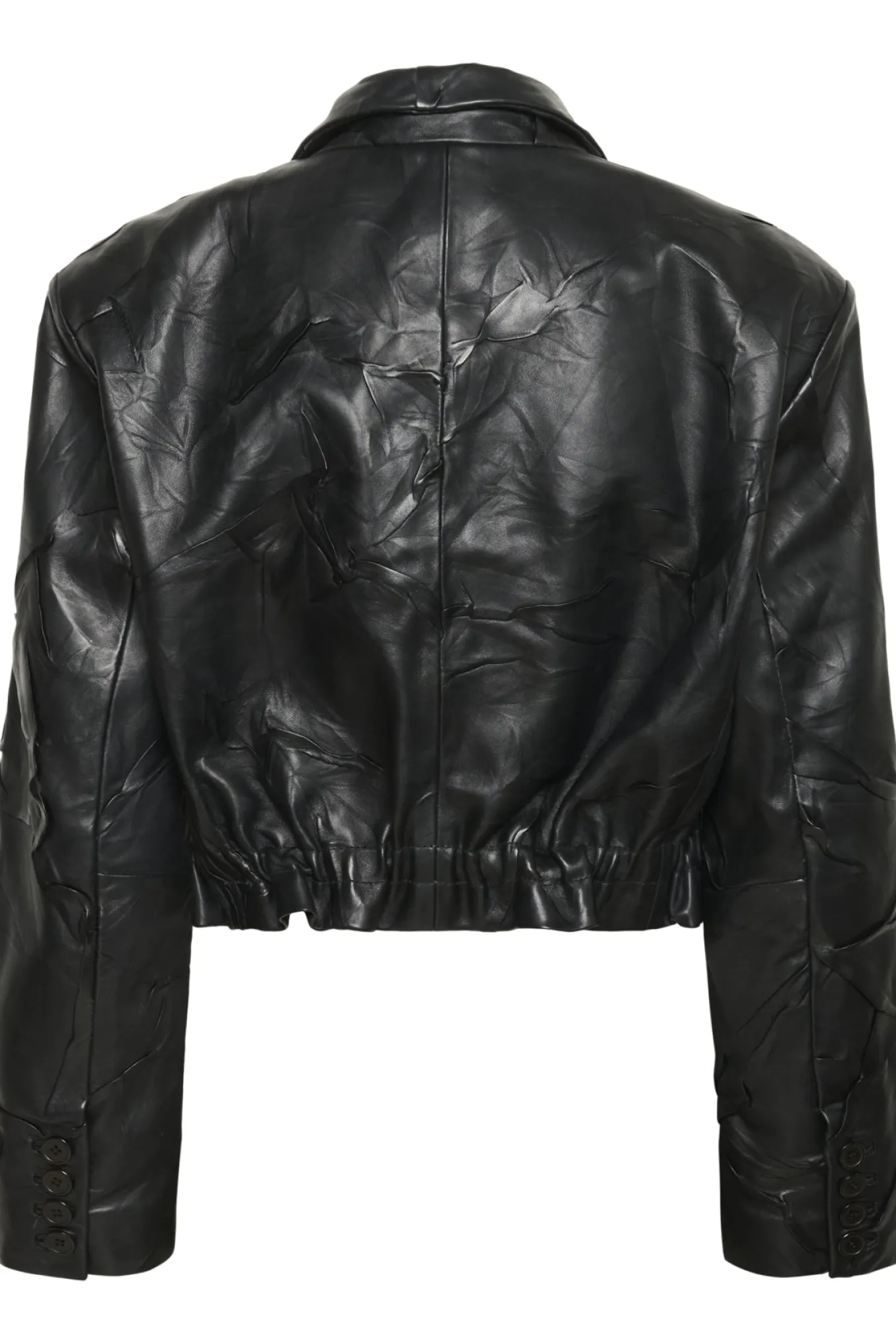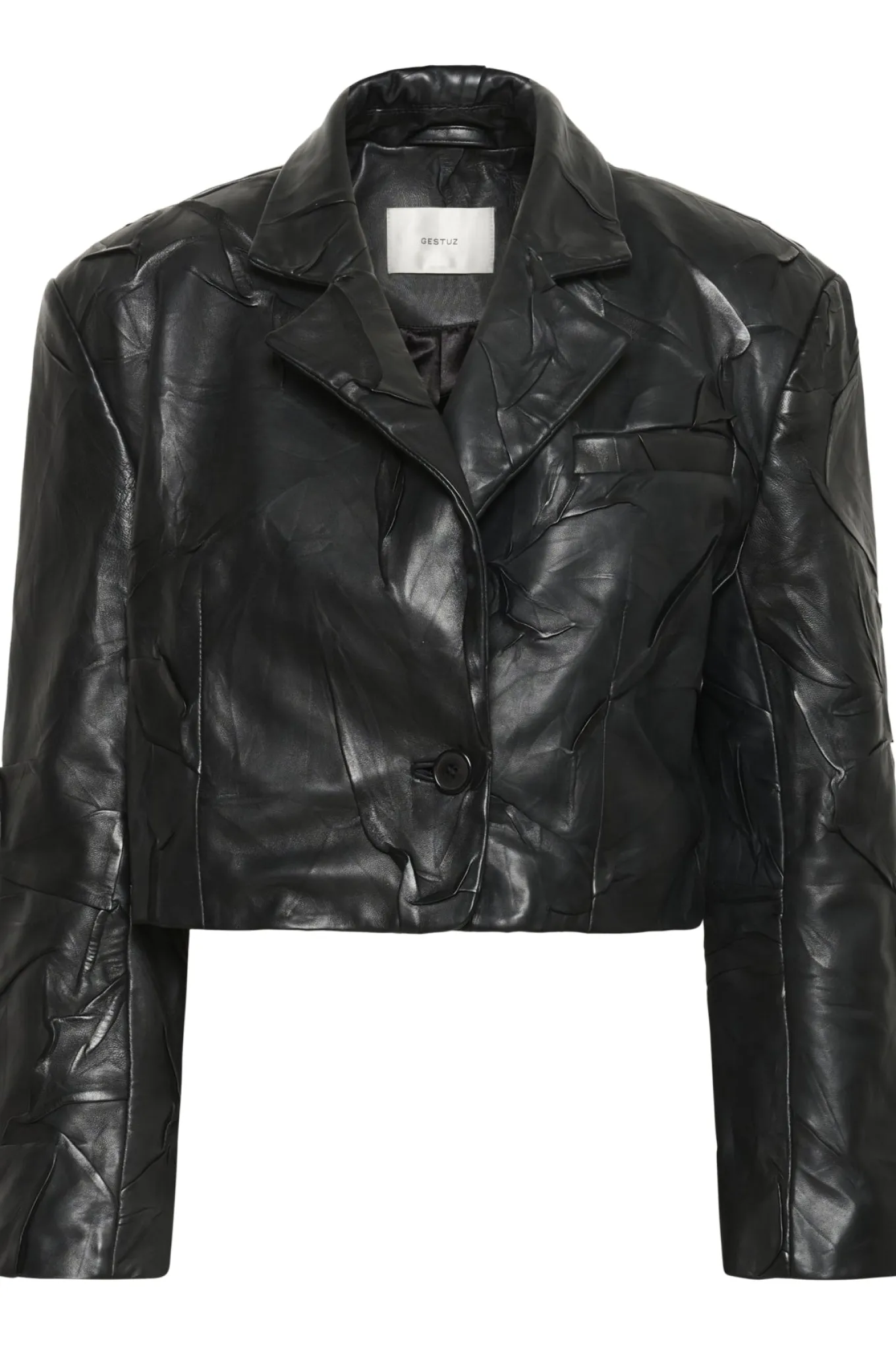 Skab et elegant og tidløst look med denne blazer i lækker sort lammeskind. Perfekt til enhver anledning, fra Gestuz.