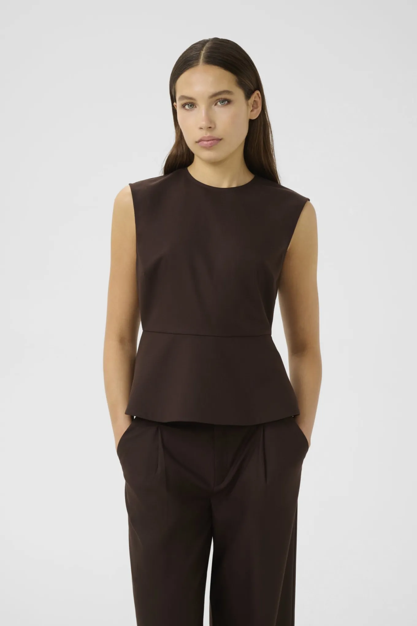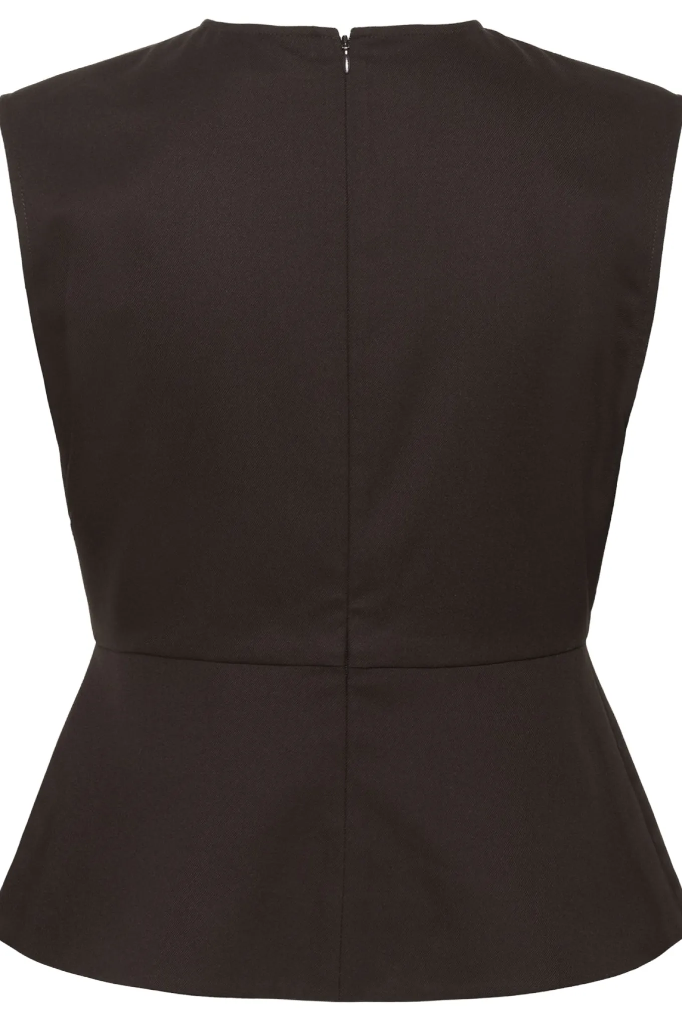 OBS! Fjernlager. Levering kan blive forlænget med 2-3 dage, hvis varen ikke findes i vores butik lige nu.Elegant figursyet top fra Gestuz med et feminint peplum snit, rund hals og lynlåslukning i nakken.