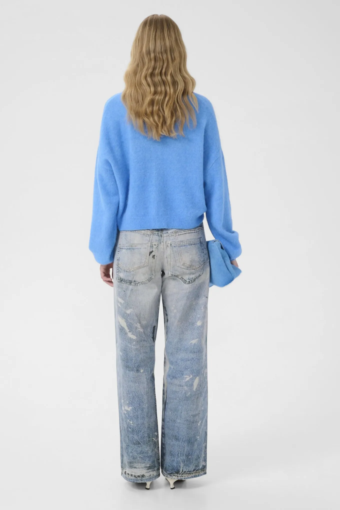 Strå til enhver lejlighed med denne klassiske striktrøje fra Gestuz. Den bløde alpaka og nylon blanding giver en behagelig pasform, mens den dybe Azure Blue farve tilføjer et elegant touch.