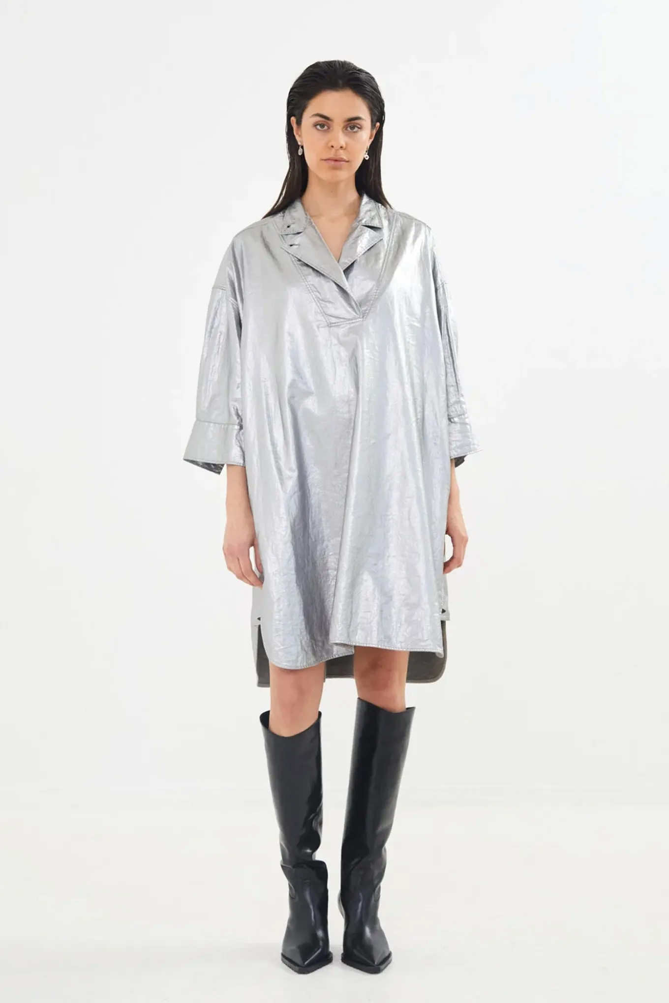 Cool kaftan fra Rabens Saloner med ¾ lange ærmer, v-udskæring i halsen med en fin krave og et fint oversized snit.