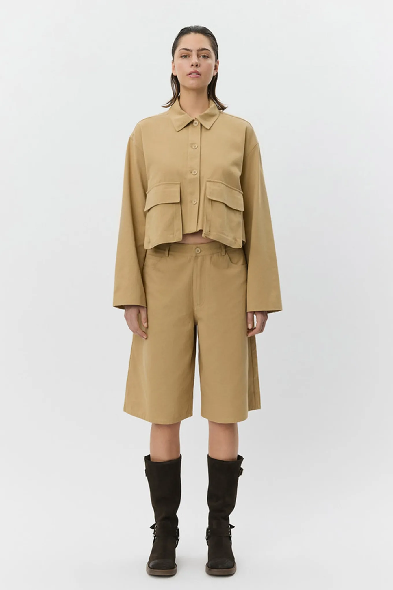 Få et afslappet og trendy outfit med disse shorts i farven Camel fra Sofie Schnoor WOMAN. Lavet af 100% bomuld og perfekt til sommergarderoben.