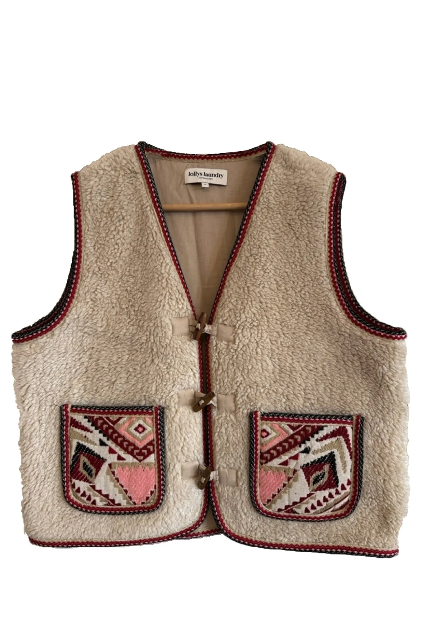 Opdater din garderobe med denne stilfulde, mørkerøde vest fra Lollys Laundry. Den er lavet af blødt polyester og foret med bomuld for ultimativ komfort. Perfekt til enhver lejlighed.