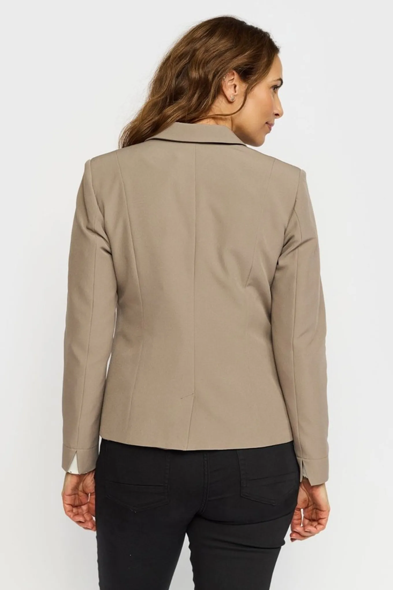 Få et smart og chic look med denne blazer i farven driftwood fra 2-BIZ. Den er lavet af en blanding af polyester og elastan, hvilket giver en behagelig pasform. Perfekt til enhver anledning.