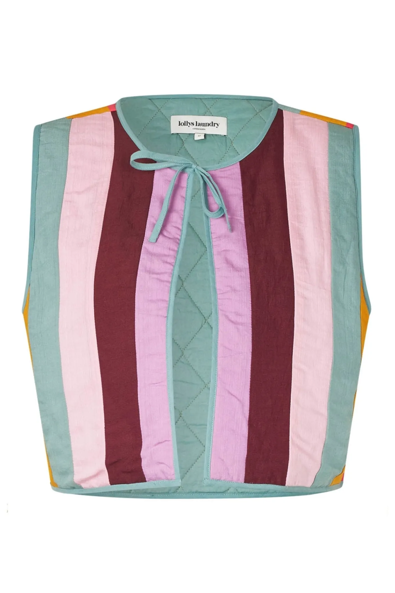 Farverig favorit fra Lollys Laundry fuld af personlighed. Den er lavet af et let polstret stof med brede striber i smukt afbalancerede toner. Den åbne pasform og bindebånd i halsudskæringen tilføjer en afslappet, feminin følelse, der er nem at style over alt fra kjoler til T-shirts.