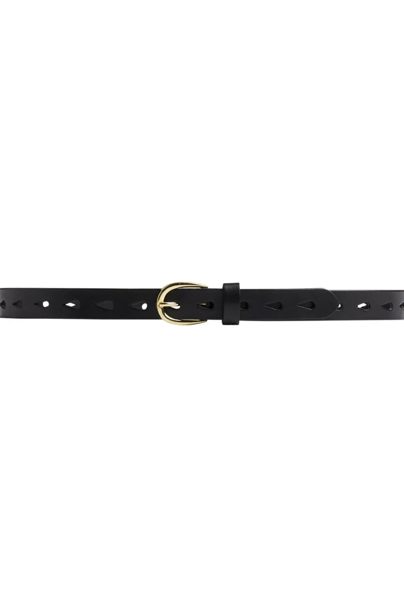 OBS! Fjernlager. Levering kan blive forlænget med 2-3 dage, hvis varen ikke findes i vores butik lige nu.Forfin dit outfit med dette elegante skindbælte, fremstillet i 100% kvalitetsskind. Bæltet har hele vejen rundt ovale udstansede huller, som skaber et råt og samtidig smukt look. Det klassiske spænde fuldender designet og gør bæltet alsidigt, perfekt til både hverdag og mere formelle anledninger.