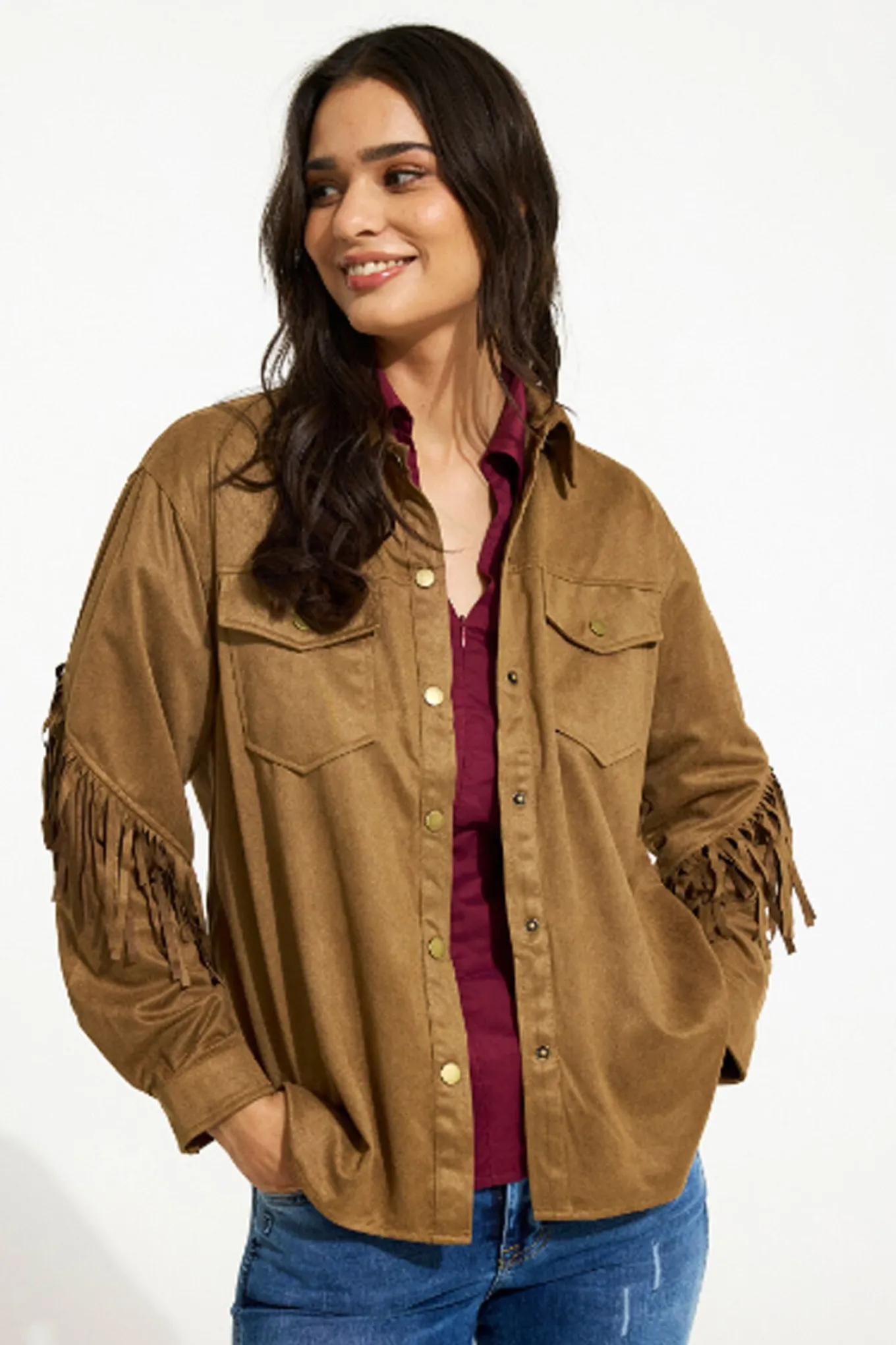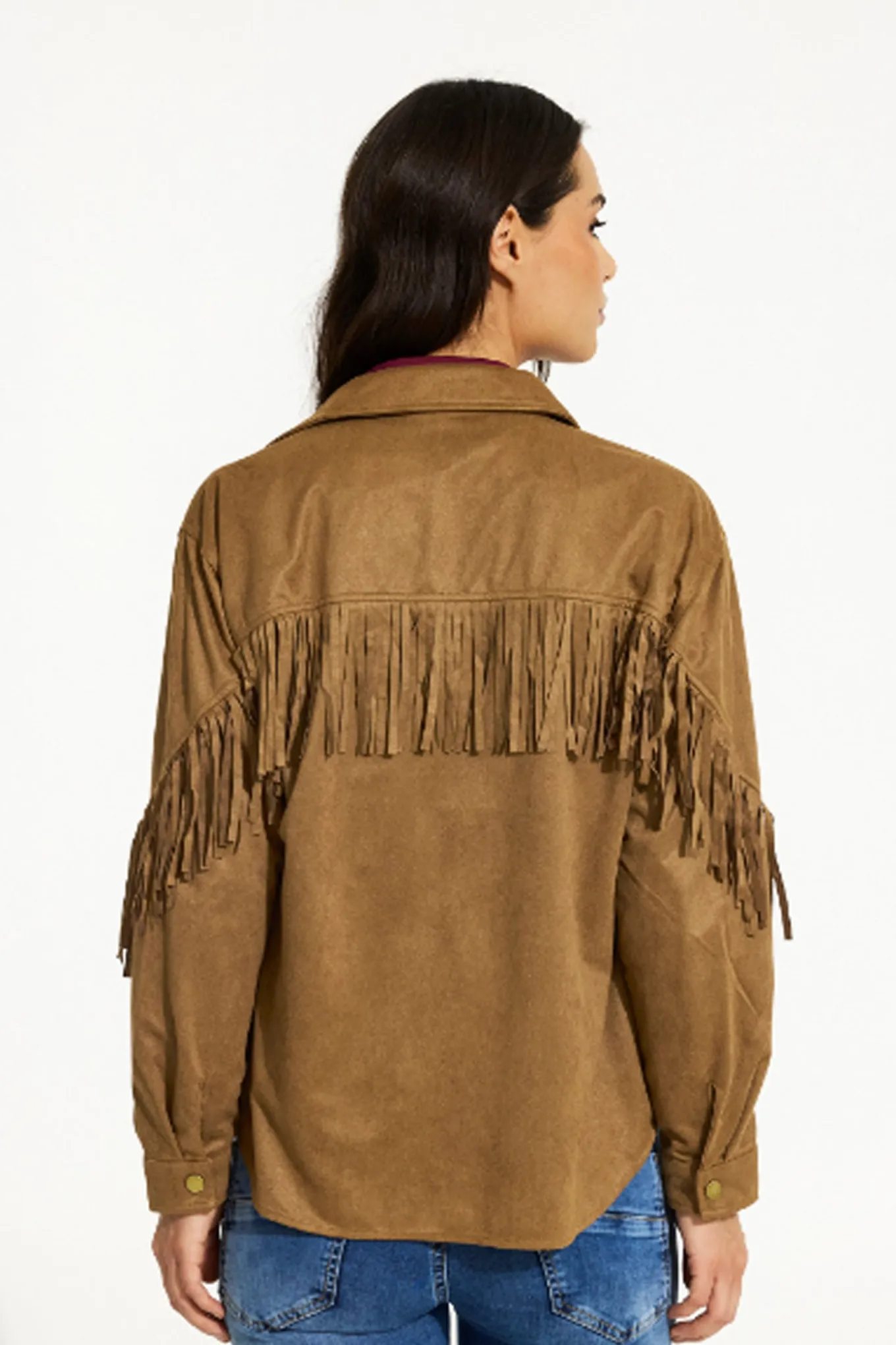 OBS! Fjernlager. Levering kan blive forlænget med 2-3 dage, hvis varen ikke findes i vores butik lige nu.Smart western inspireret skjorte fra In Front med lange ærmer, krave i halsen og lommer på brystet.Skjorten har også trykknapper langs fronten og super fine frynser langs ærmerne og over ryggen.