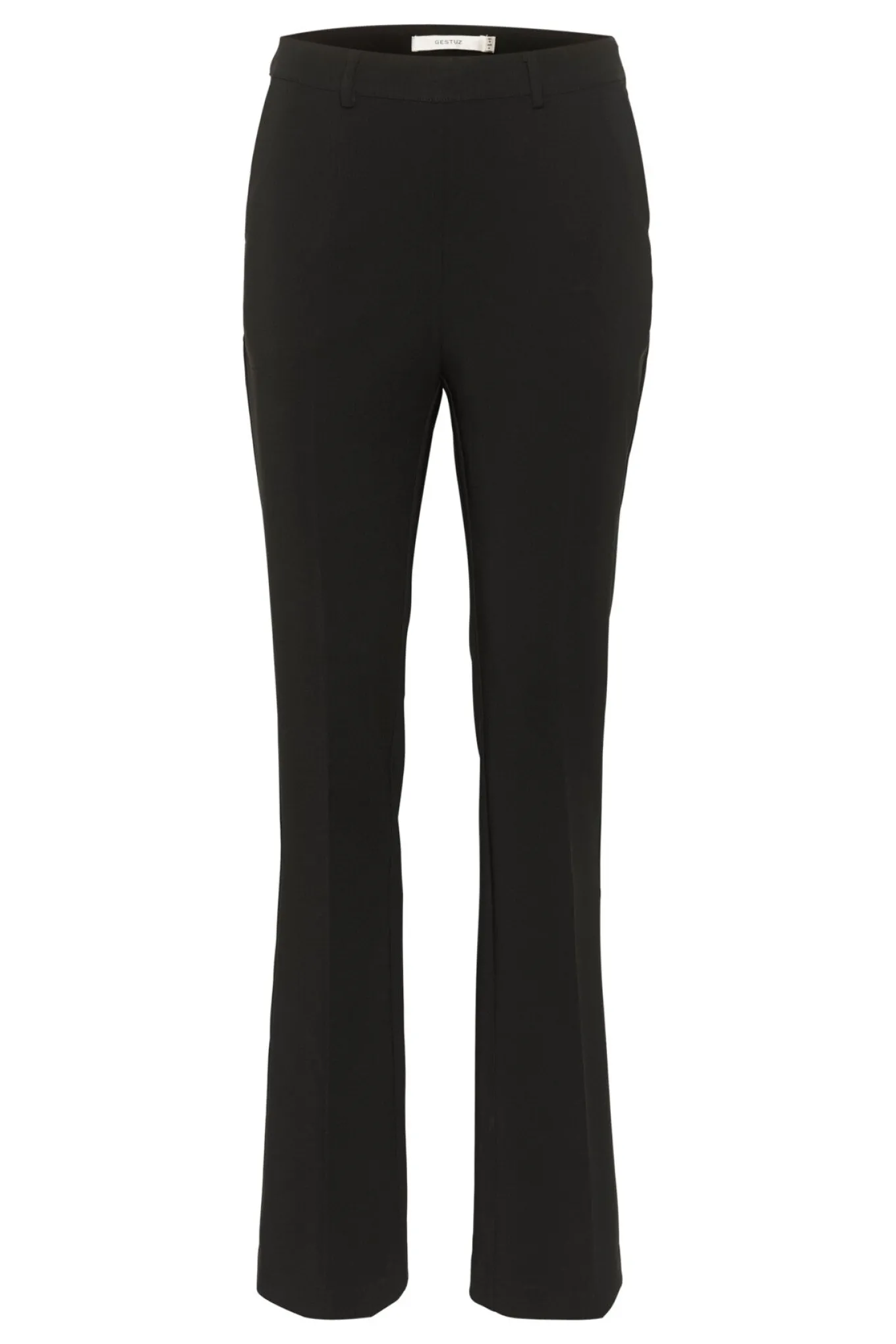 OBS! Fjernlager. Levering kan blive forlænget med 2-3 dage, hvis varen ikke findes i vores butik lige nu.Flotte figursyet bukser fra Gestuz med høj talje, et flot flare snit og et stilrent enkelt udtryk.