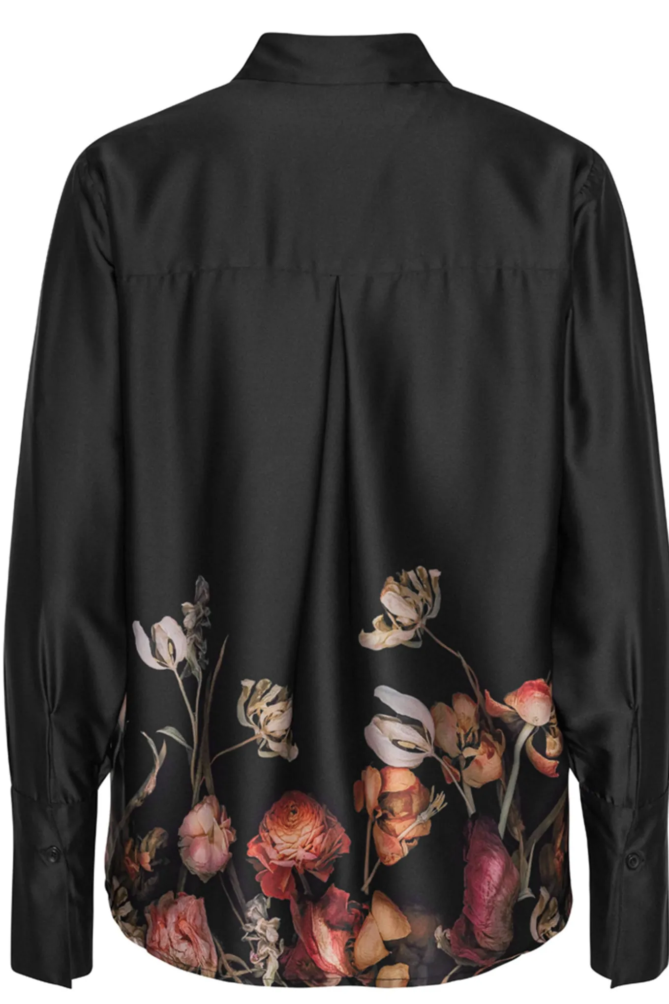 Cool skjortebluse fra Karmamia med lange ærmer, skjortekrave i halsen og brede manchetter.Skjorten lukkes med små knapper langs fronten og er også detaljeret med det smukkeste print i skønne farver.