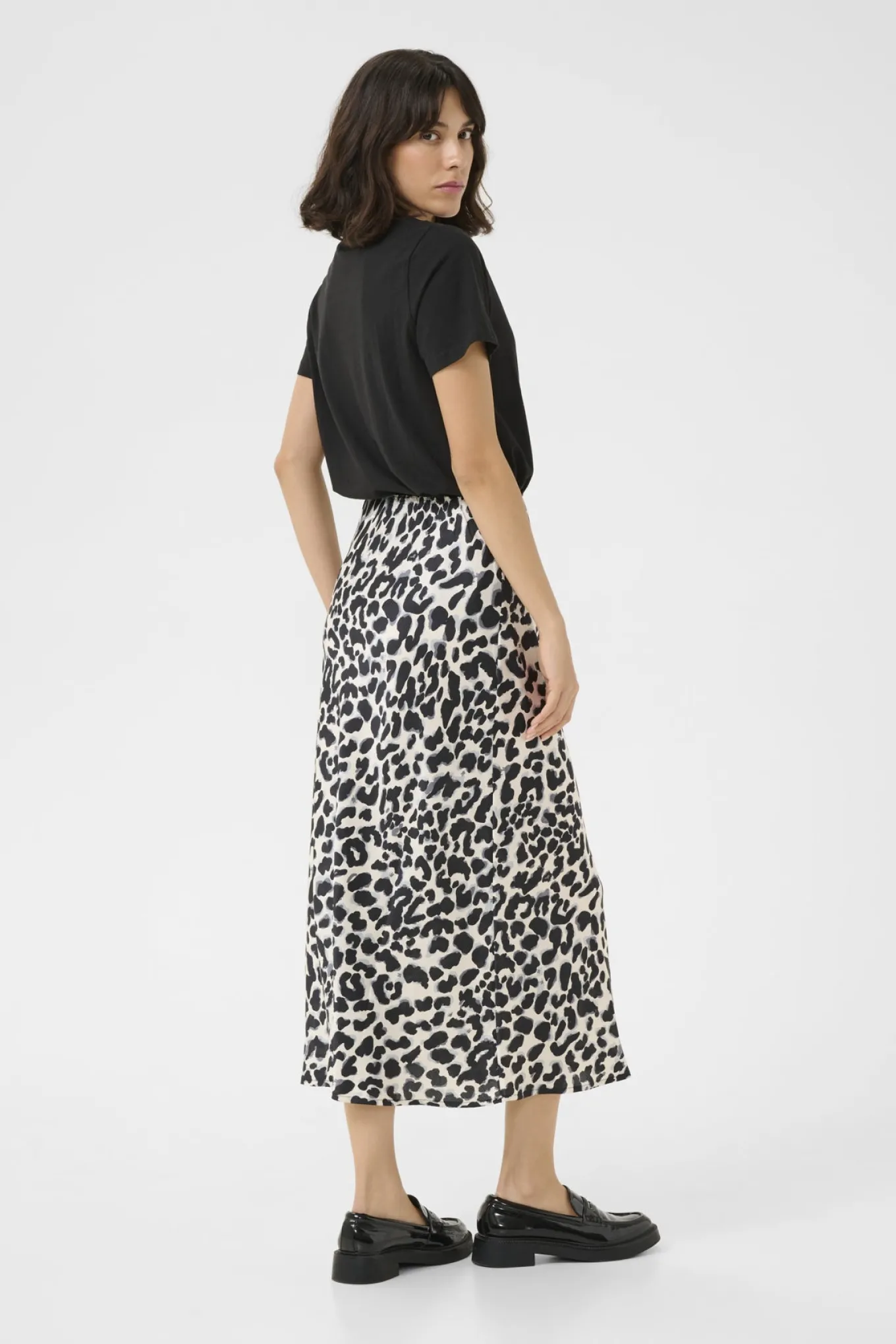 Denne nederdel fra Kaffe har et trendy leopardprint i grå nuancer. Den er lavet af 100% polyester og vil give dit outfit et edgy touch.