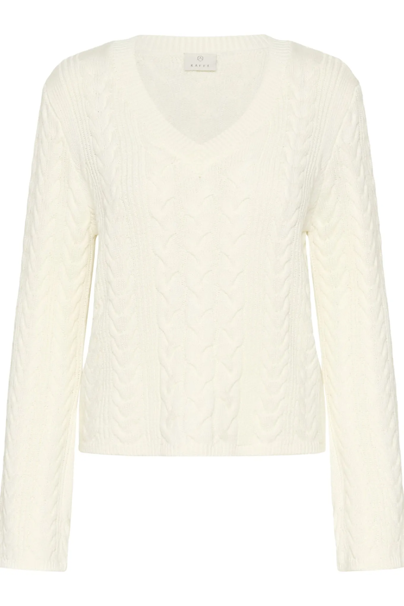 Opdater dit strik-garderobe med denne lækre, bløde pullover fra Kaffe. I farven Chalk og lavet af 50% bomuld og 50% akryl, er den perfekt til enhver lejlighed.