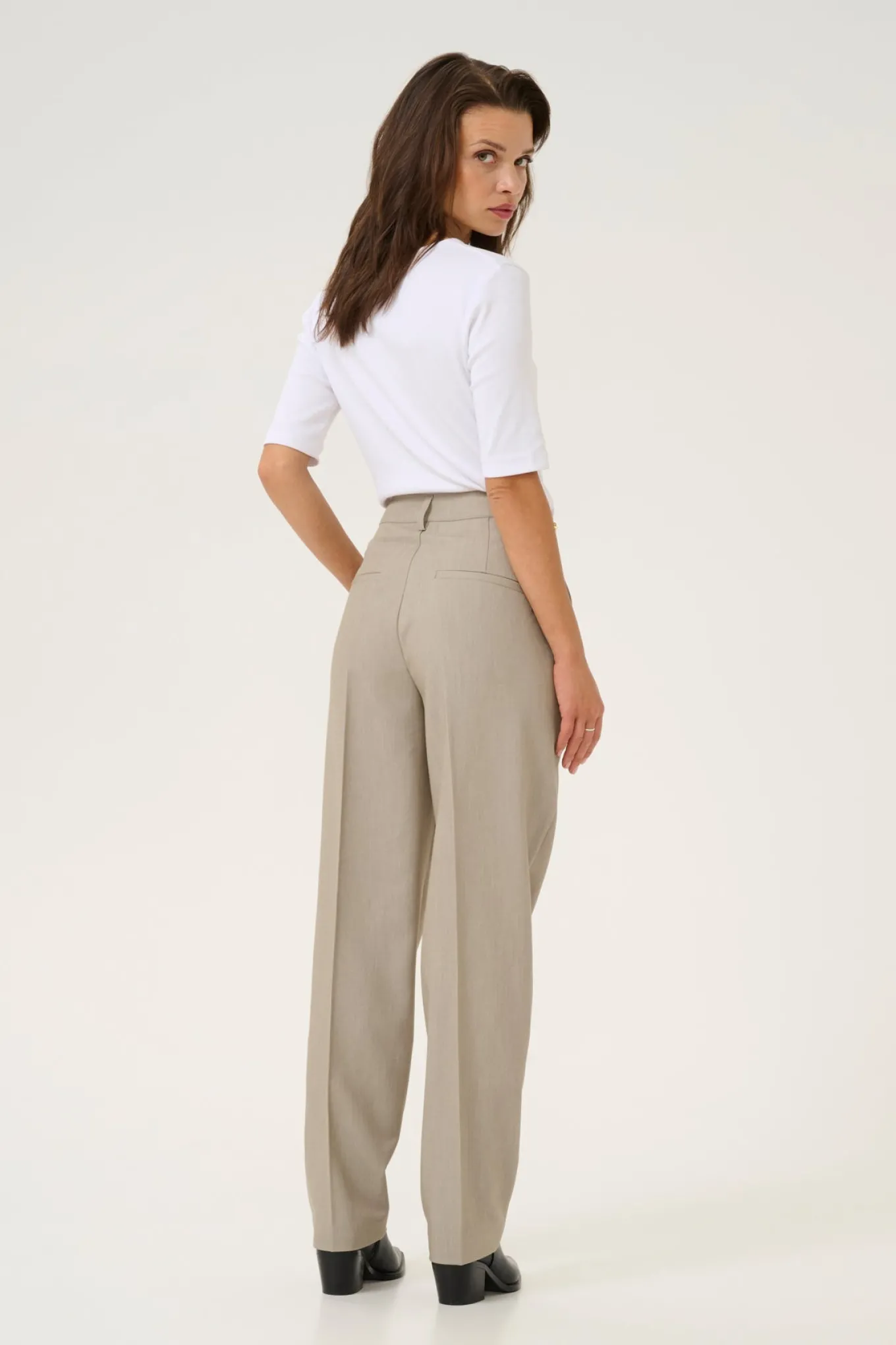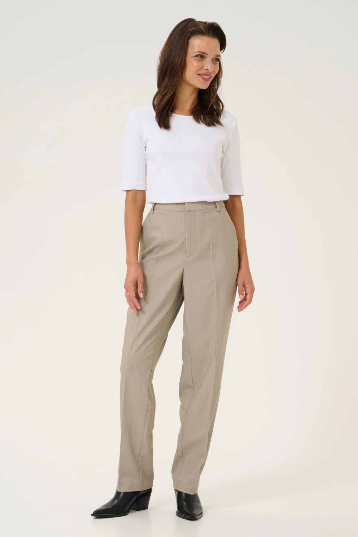 OBS! Fjernlager. Levering kan blive forlænget med 2-3 dage, hvis varen ikke findes i vores butik lige nu.Smarte bukser fra Kaffe med høj talje, et straight-leg snit og et stilrent udtryk.