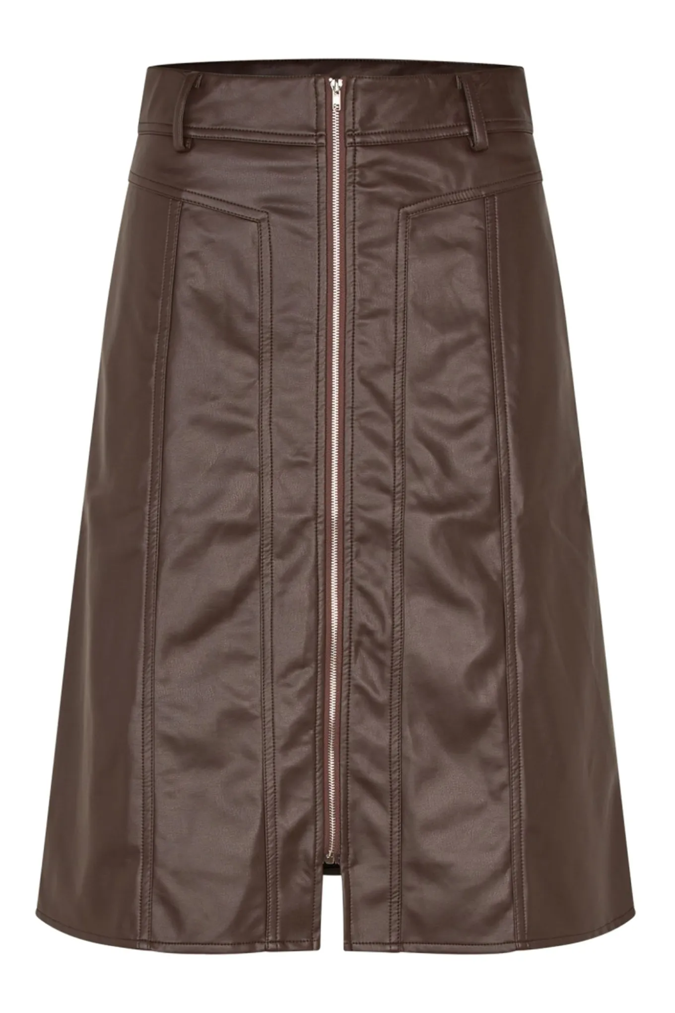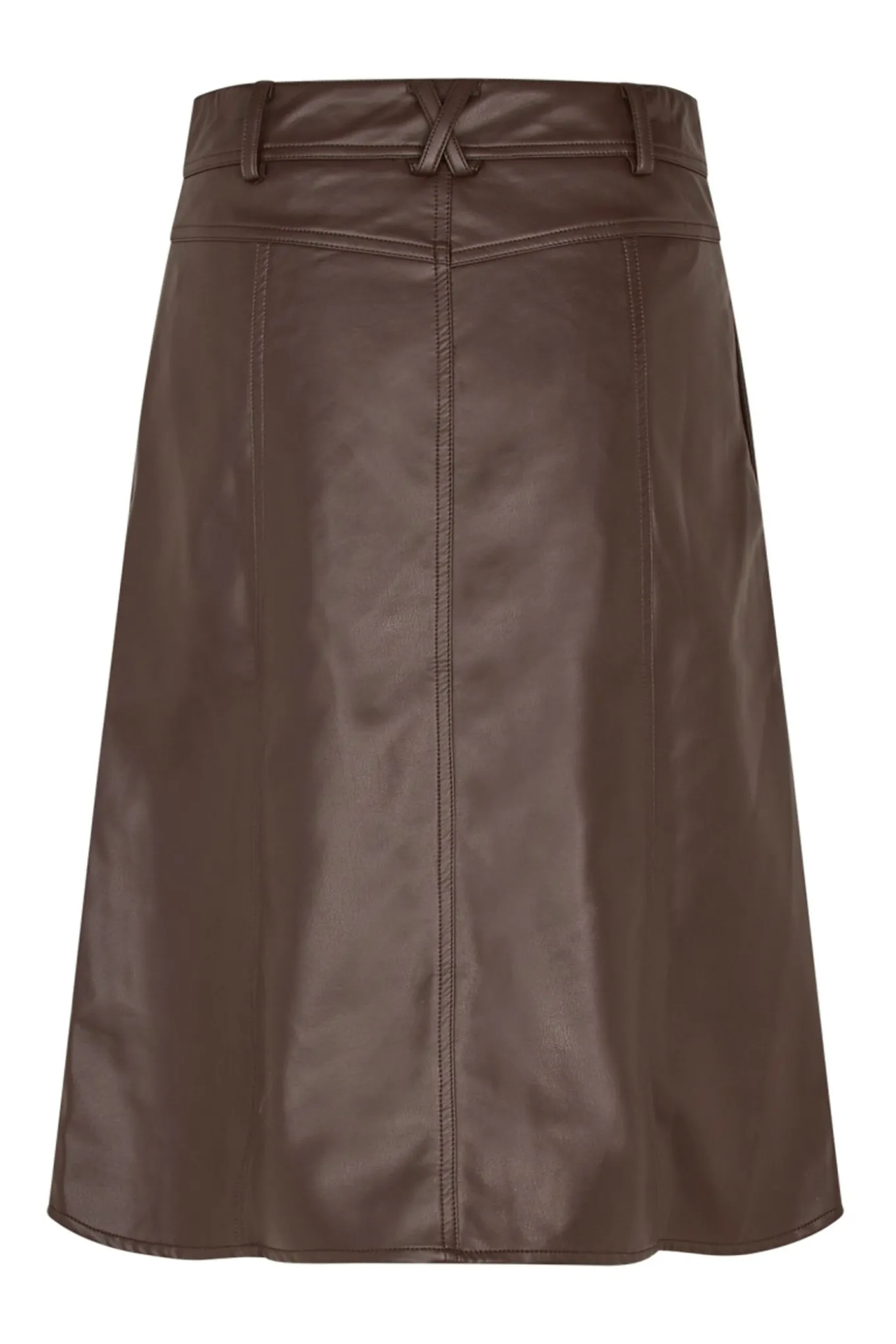 Denne smukke og elegante midi nederdel er et must-have til enhver garderobe. Den brune farve og det bløde materiale af bomuld og PU giver et klassisk og tidløst look. Perfekt til enhver anledning, fra Lollys Laundry.