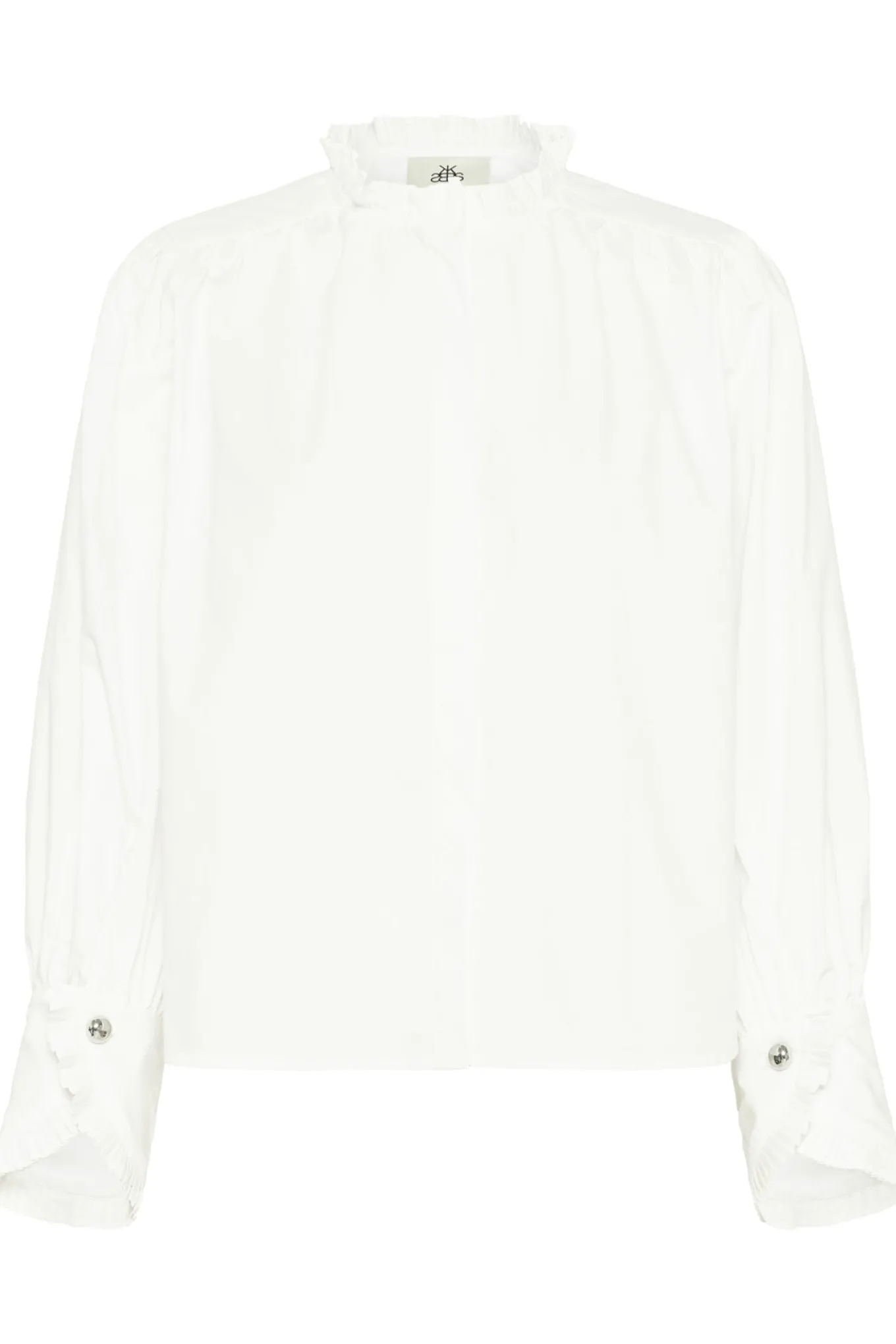 Opdater din garderobe med denne tidløse, hvide bluse fra Karen by Simonsen. Den er lavet af 100% bomuld og er perfekt til både hverdag og fest.