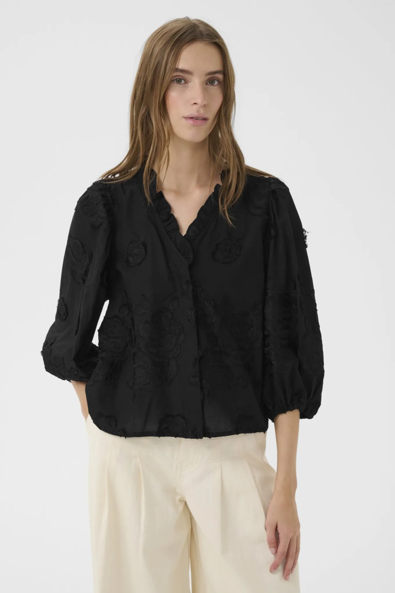 Forkæl dig selv med denne smukke bluse fra Karen by Simonsen. Den er lavet af 90% bomuld og 10% polyester og har en elegant meteorite-grå farve. Perfekt til enhver lejlighed.