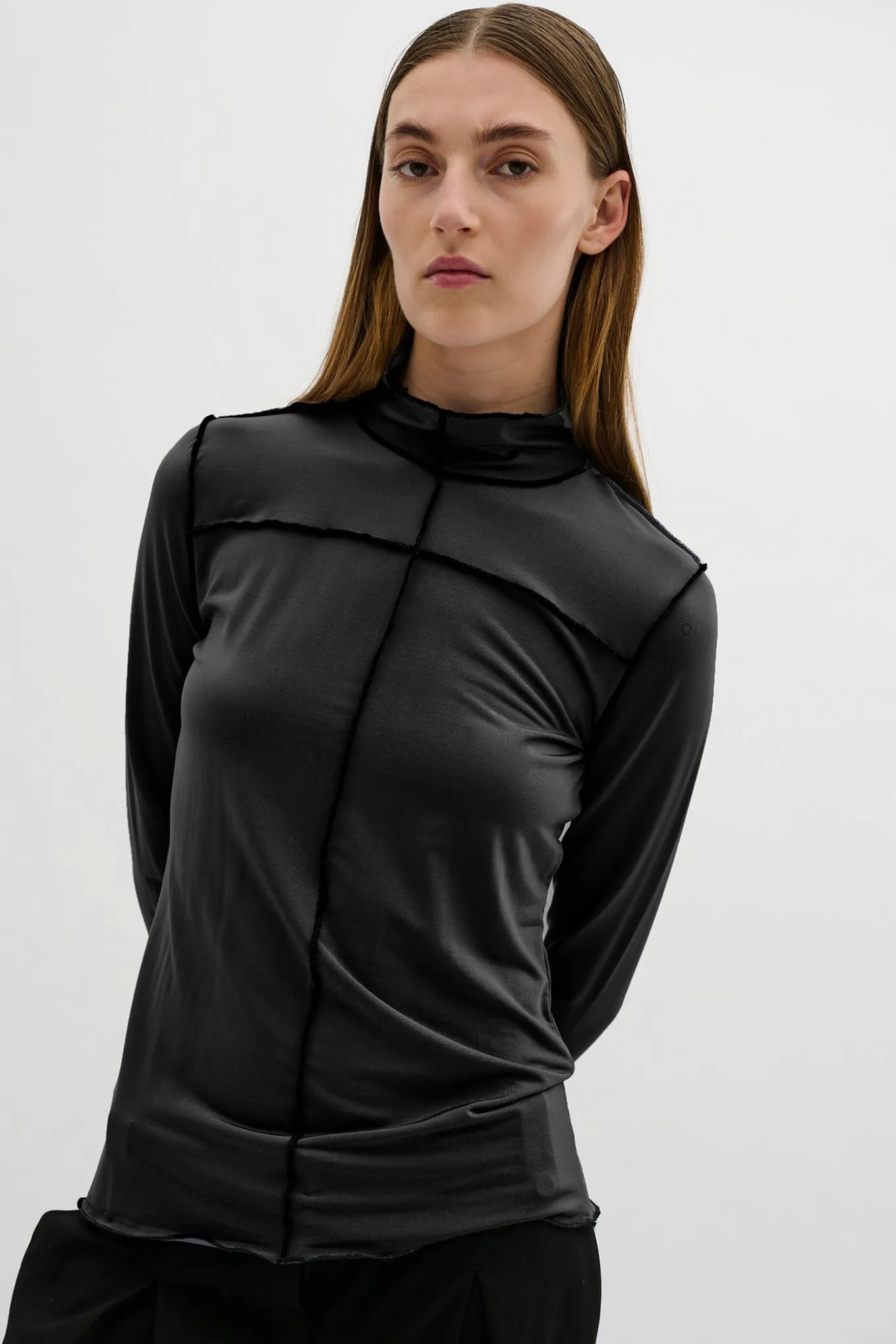 OBS! Fjernlager. Levering kan blive forlænget med 2-3 dage, hvis varen ikke findes i vores butik lige nu.Flot bluse fra Karen By Simonsen med lange ærmer, høj hals og en tætsiddende pasform.